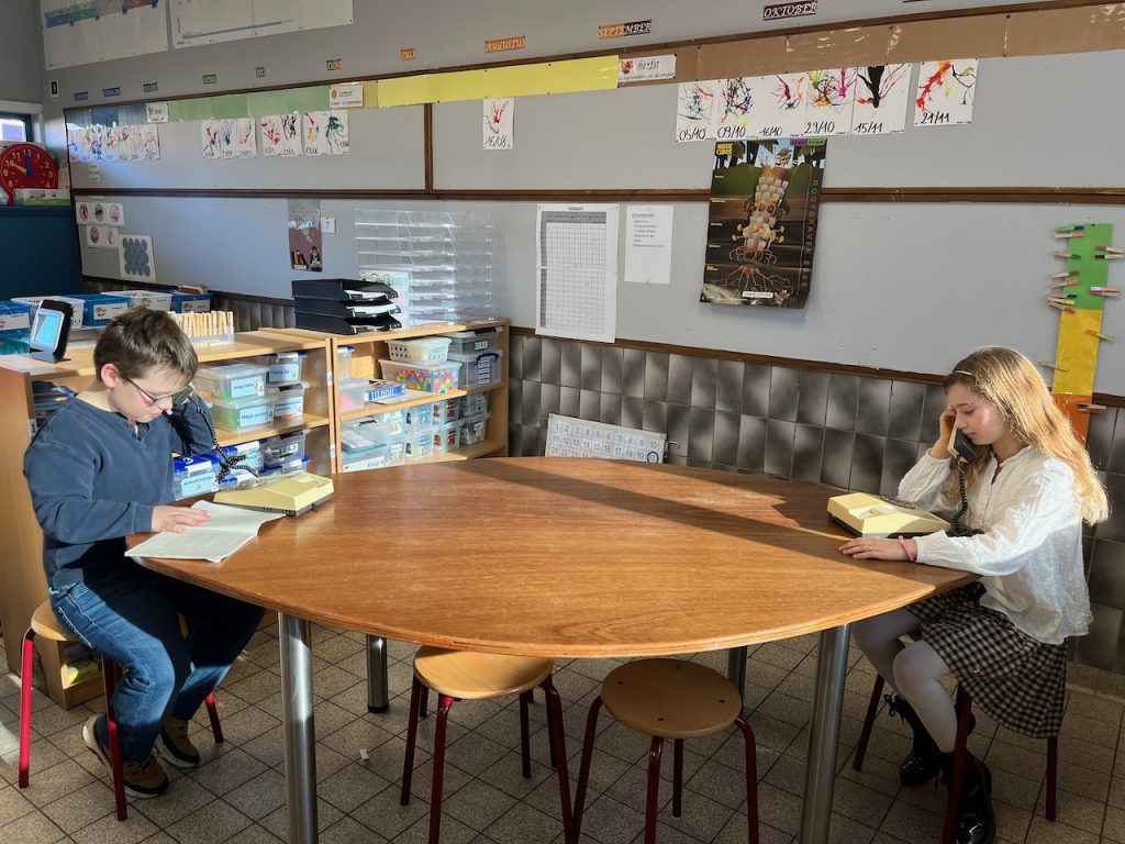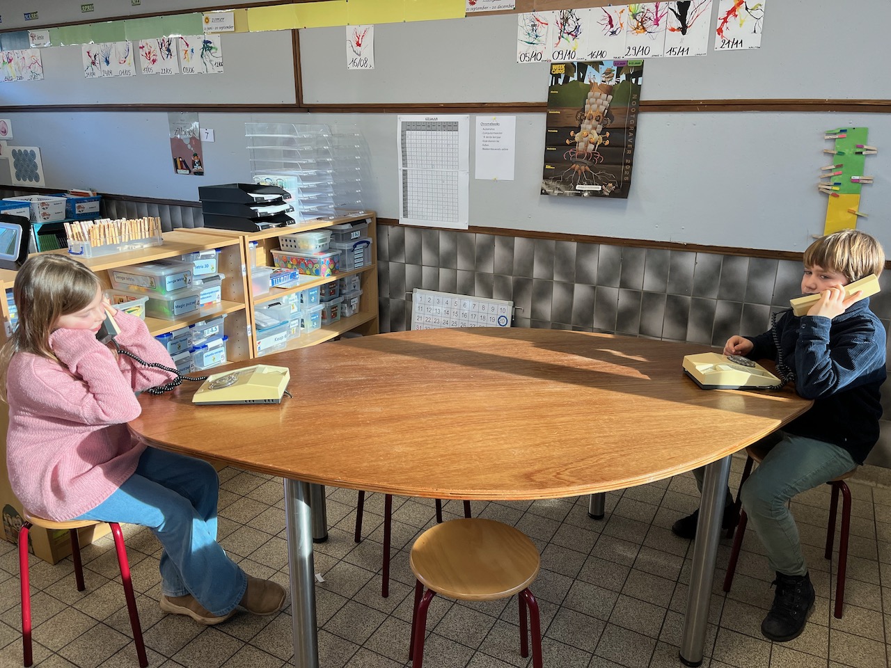 In het derde leerjaar leerden we hoe je op een correcte en beleefde manier telefoneert. We oefenden hoe je een gesprek start, wat je kan zeggen tijdens het gesprek en hoe je afscheid neemt. Onze gesprekken werden opgenomen en nadien samen beluisterd en besproken in de klas. Een heel toffe activiteit!