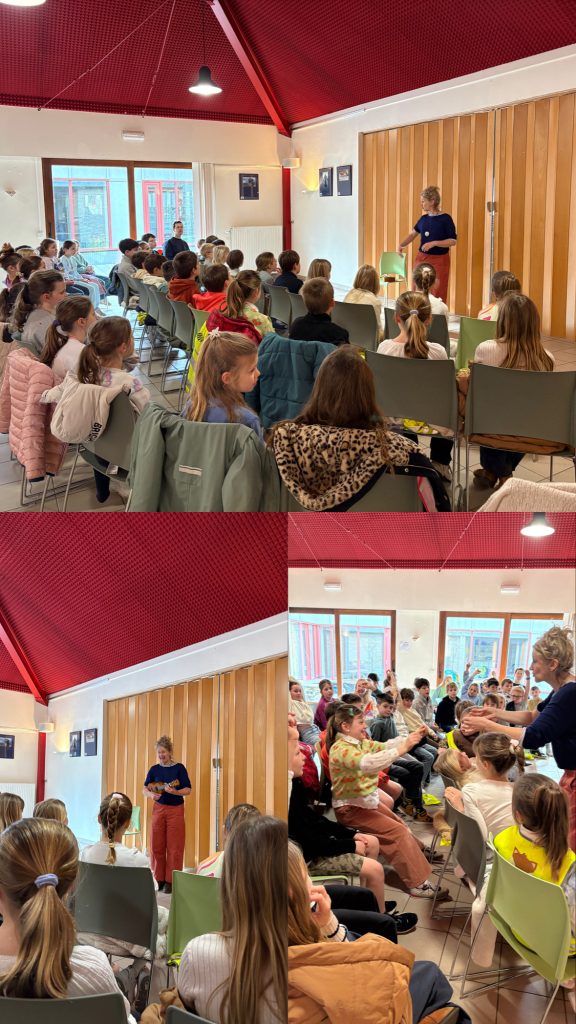 In het kader van de Jeugdboekenmaand gingen we vandaag op bezoek bij Hilde Rogge. Zij nam ons mee in haar wereld van verhalen en vertelde ons twee prachtige vertellingen.