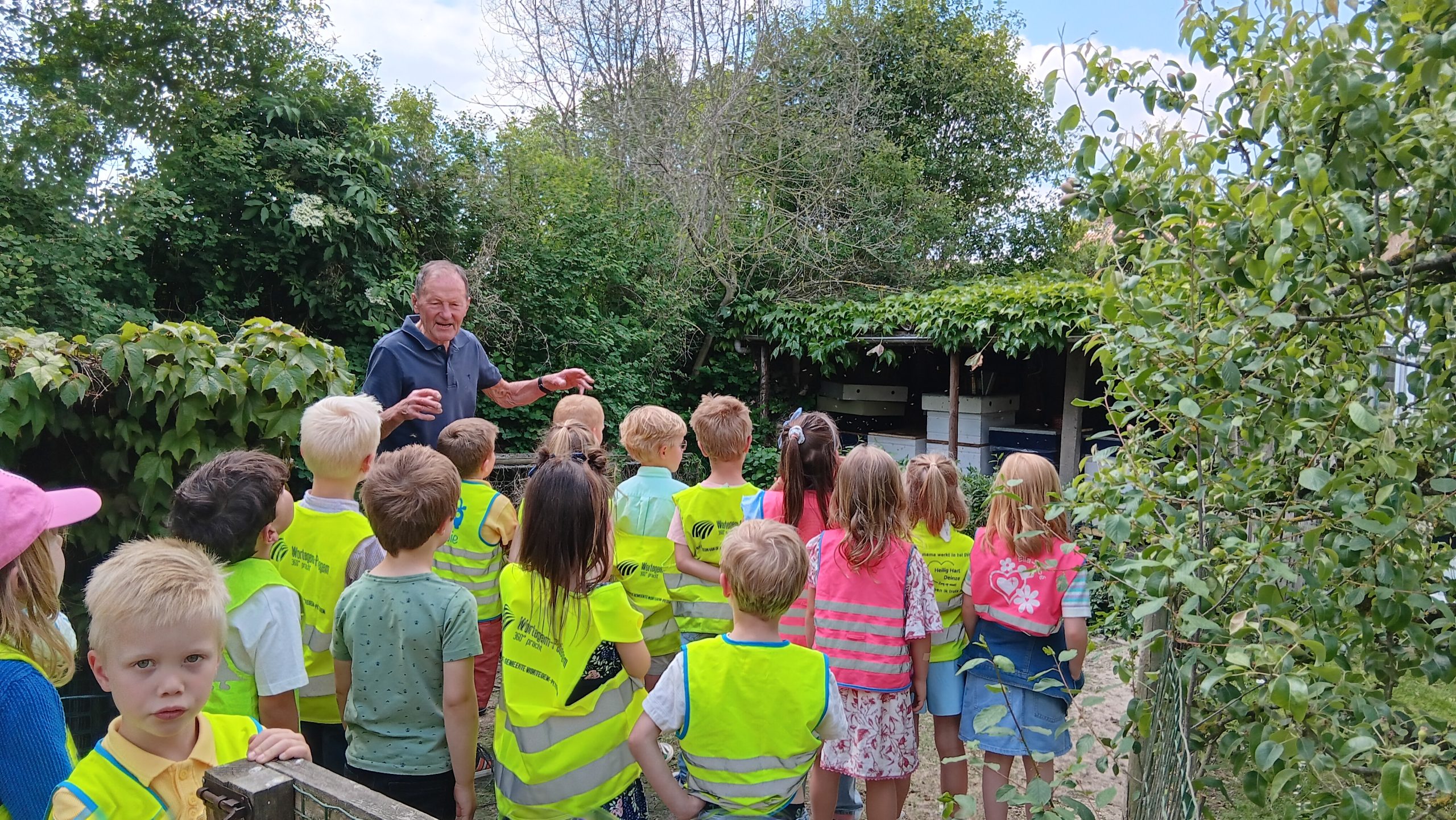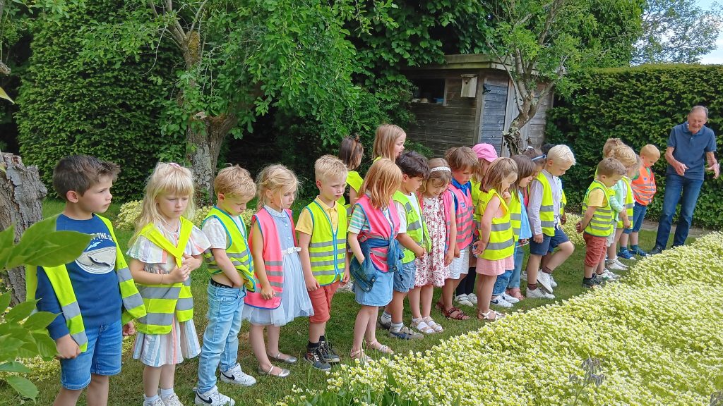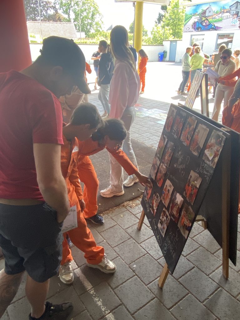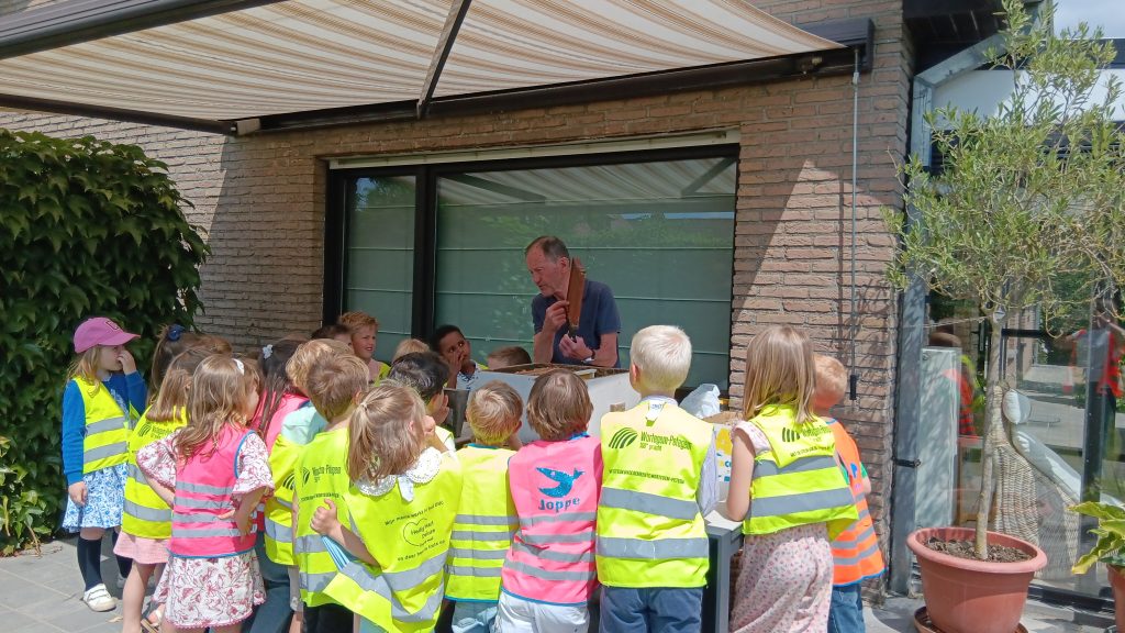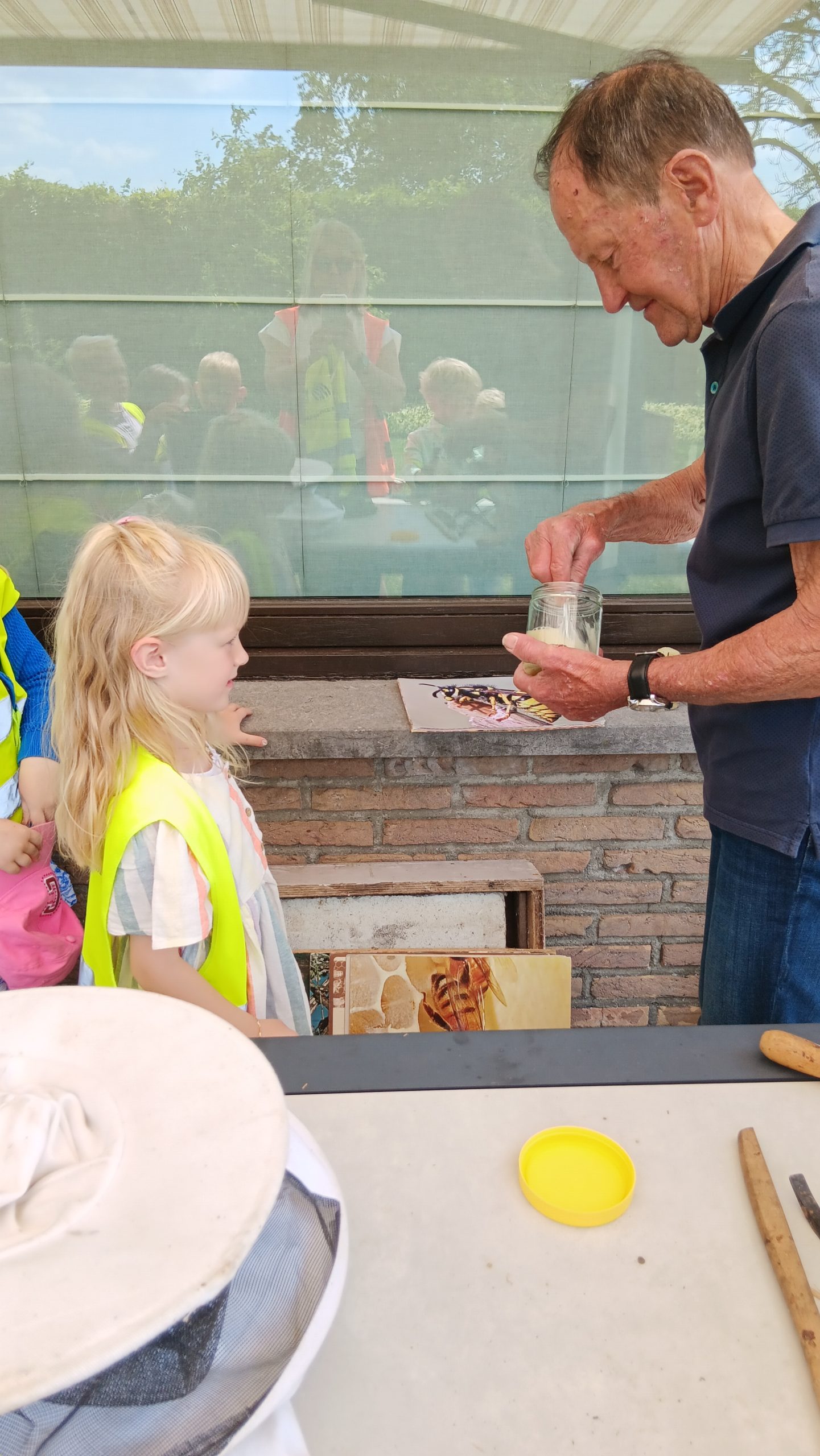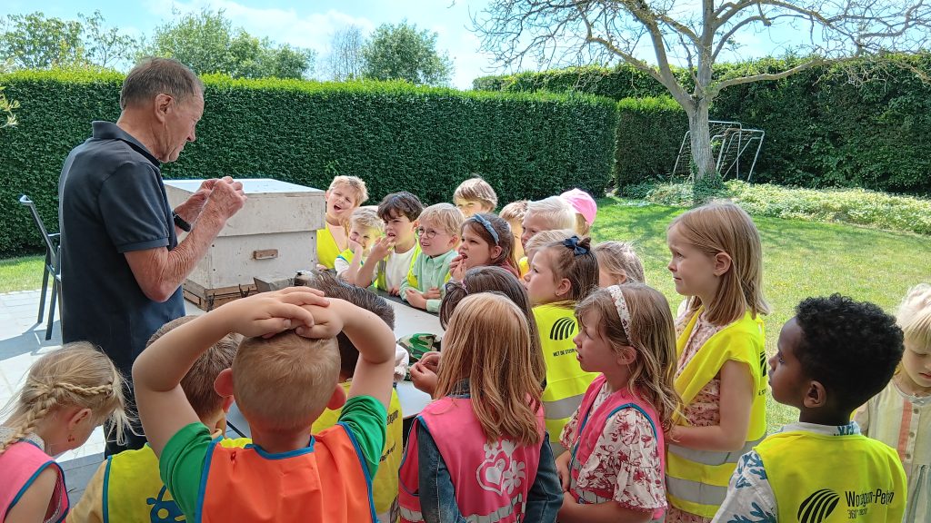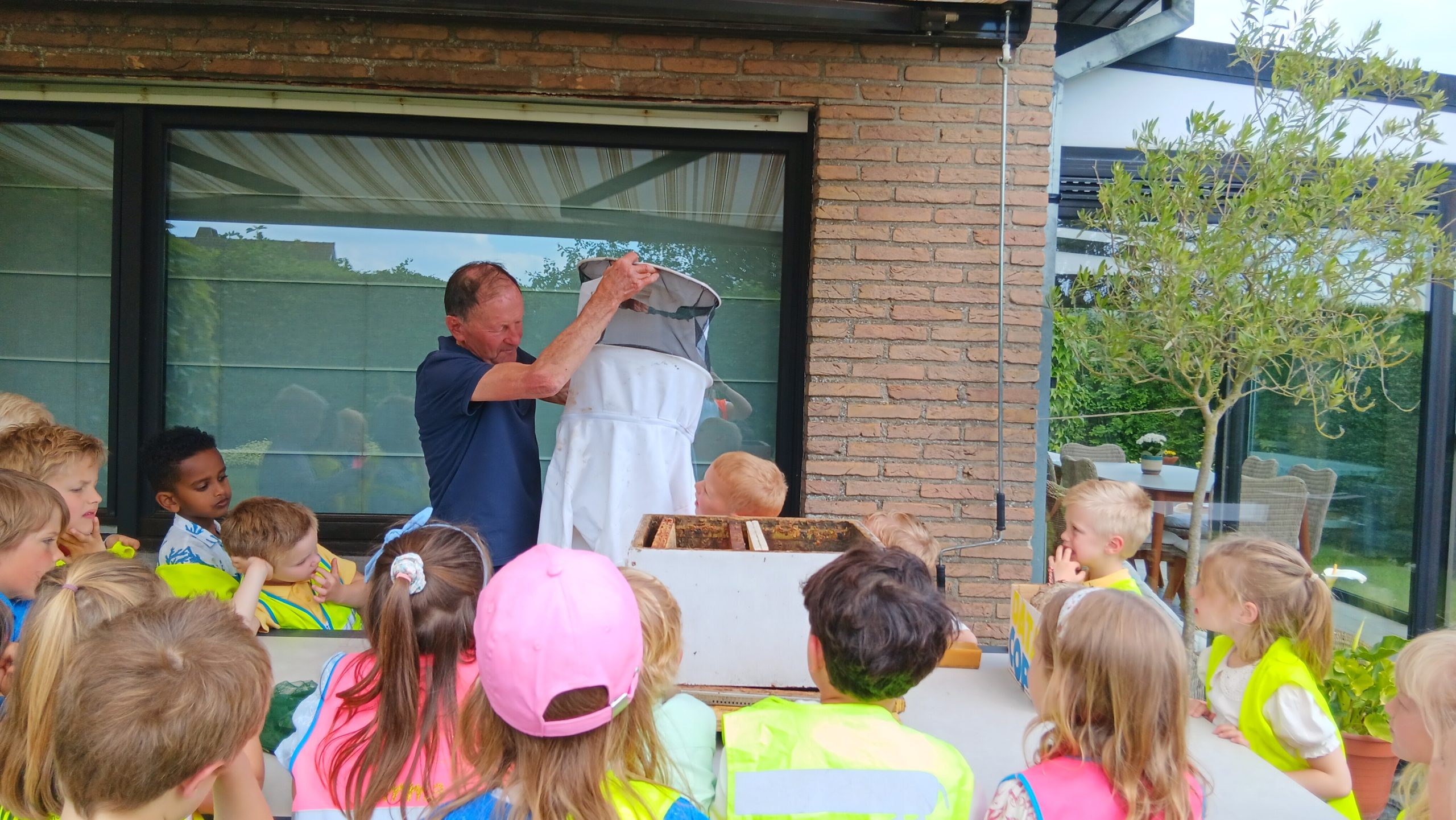Bij de start van ons thema de bijen brengen we een bezoek aan de imker, meester Gilbert. Iedereen luisterde naar de boeiende uitleg over deze bezige bijtjes. En ja hoor de bijtjes waren zeer actief… Celeste heeft het gevoeld maar ze was heel dapper, bravo! Als slot mocht iedereen een lepeltje honing proeven.