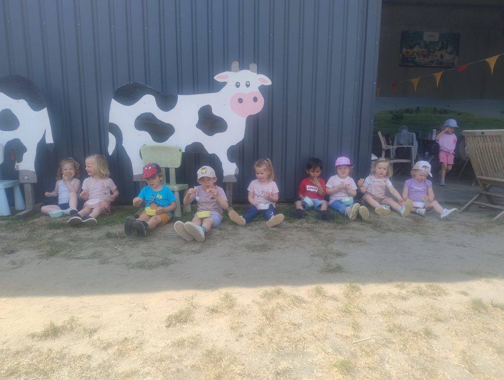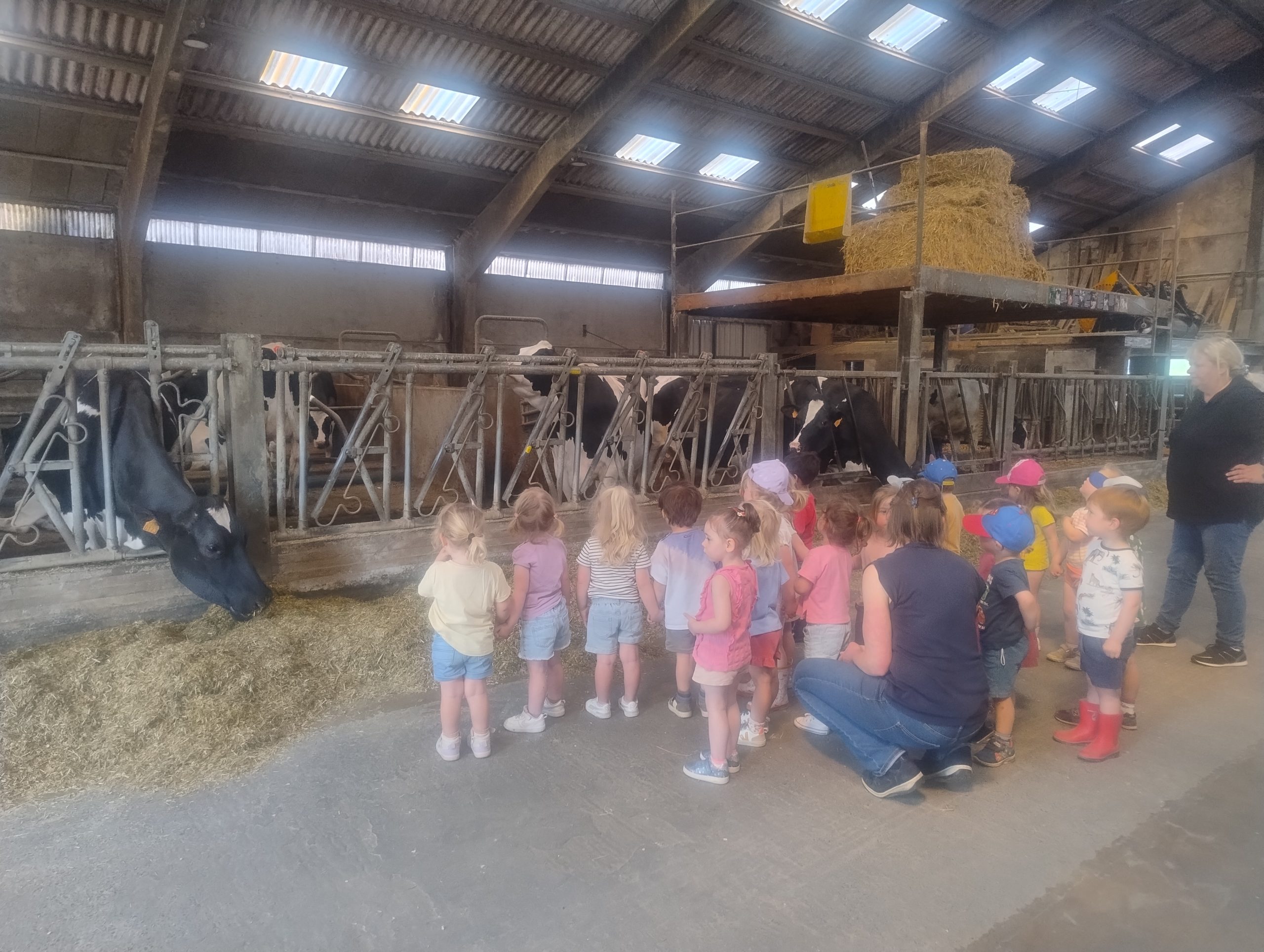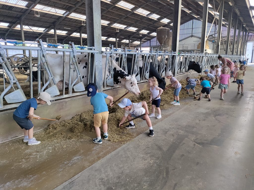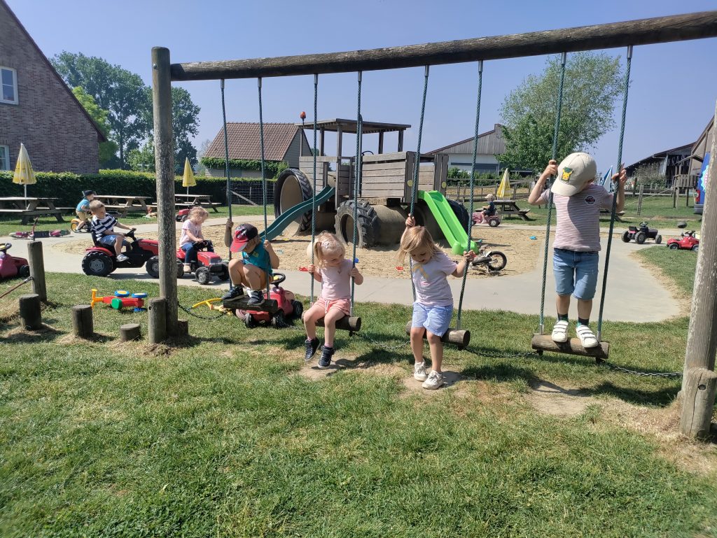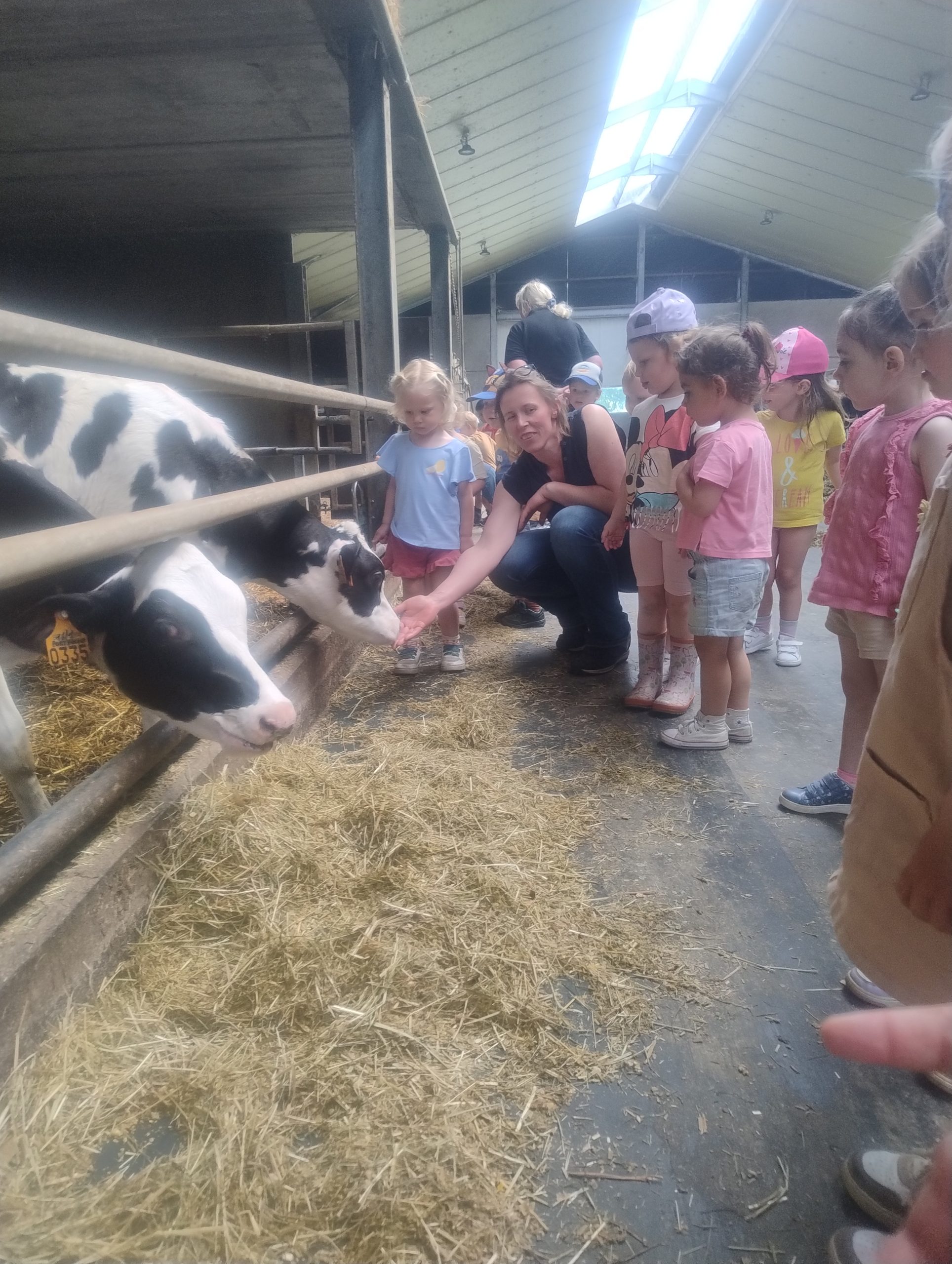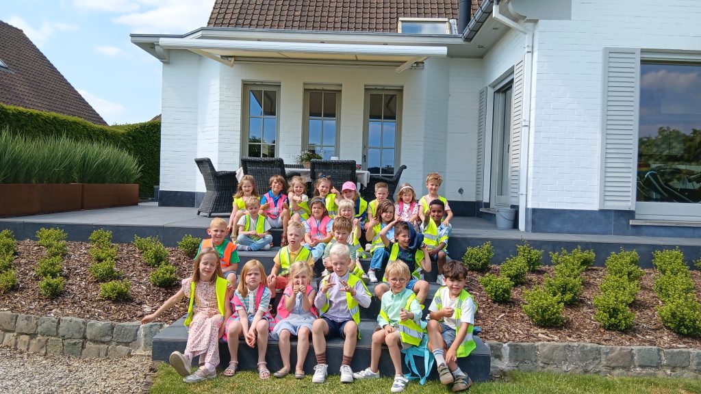 Een grote bus stond voor de school te wachten, een spannende start van de dag! Bij aankomst op de boerderij kregen we een rondleiding langs de koeien, kalfjes, tractors, konijnen, … . We mochten ook op de speeltuin: met de tractors rijden, zand-ijsjes maken en het apenparcours trotseren! Al snel was het tijd om energie op te doen, onze boterhammen en sandwiches smaakten des te meer.