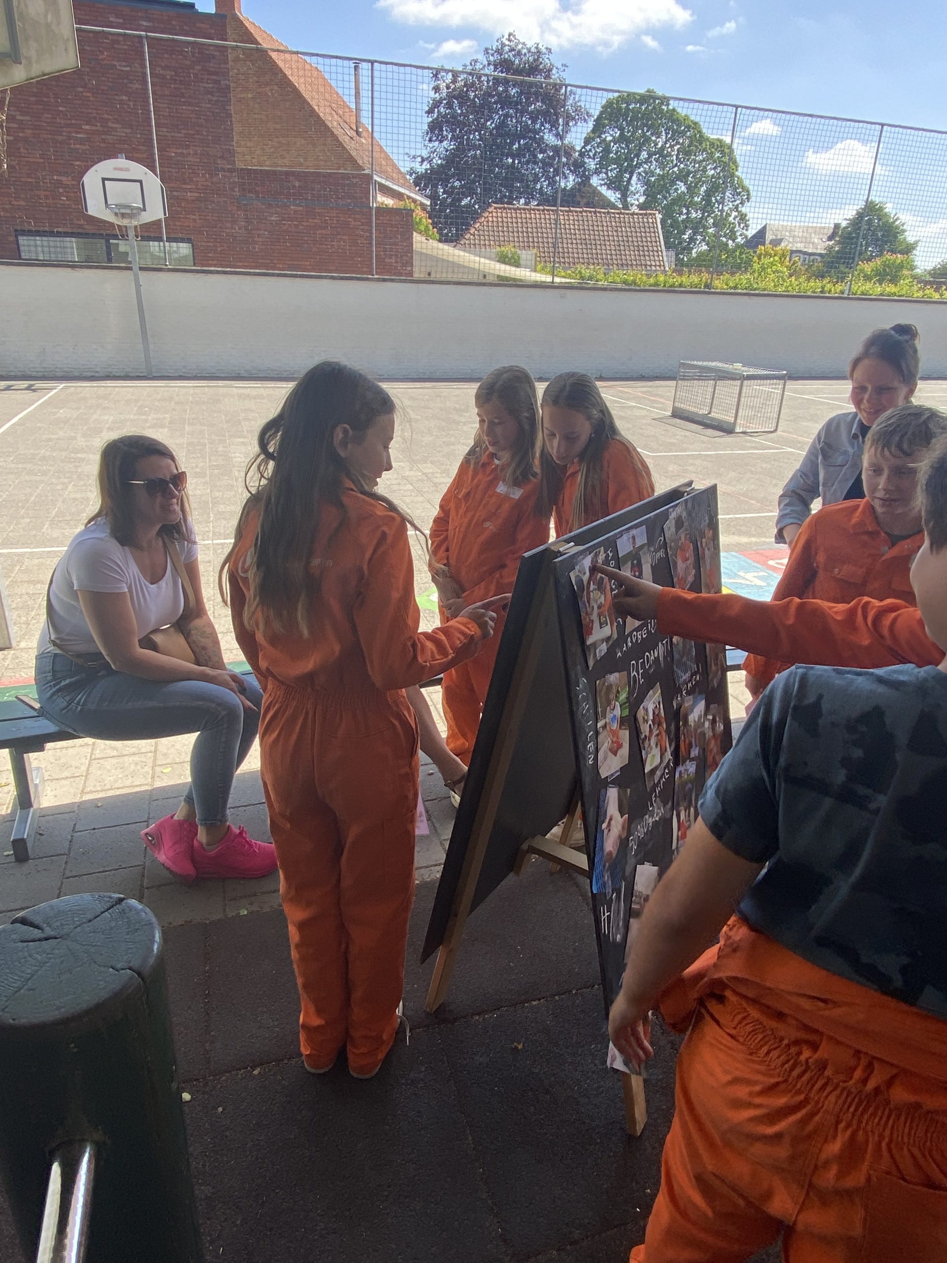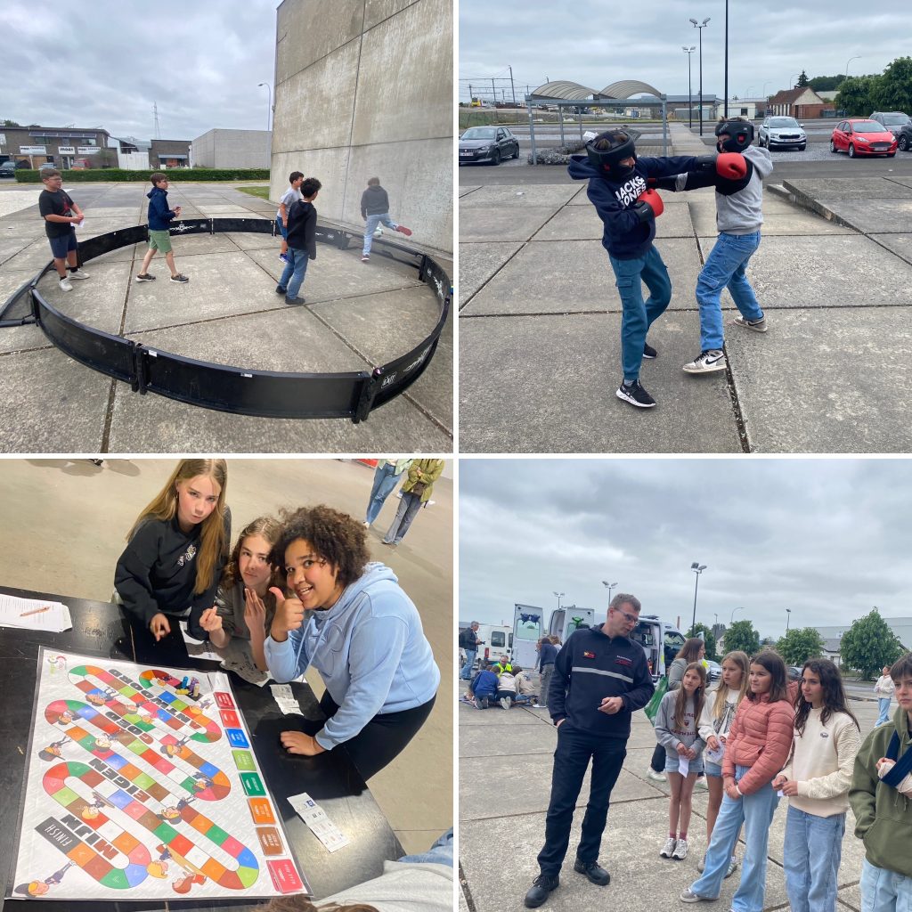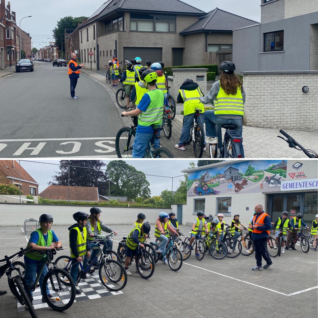 We fietsten samen naar de Qubus in Oudenaarde om er met nog vele andere zesdejaars het M.E.G.A-project op een fijne manier af te ronden. Eerst mochten we samen genieten van een theatervoorstelling ‘DOEDADIS’ van theater Stam. Verschillende thema’s zoals ‘online challenges’ kwamen aan bod en werden besproken. Daarna mochten de kinderen ‘een beurs’ met verschillende interessante standen bezoeken in het kader van M.E.G.A. Tenslotte mochten we onze mooiste dansmoves bovenhalen op de fruitsapfuif. Het werd een mega toffe voormiddag! In de namiddag gingen we op tocht met onze fiets door Petegem, onder leiding van politieman Tom. Hij bereidde ons zo goed mogelijk voor op het fietsexamen. Het werd een sportieve en leerrijke dag!