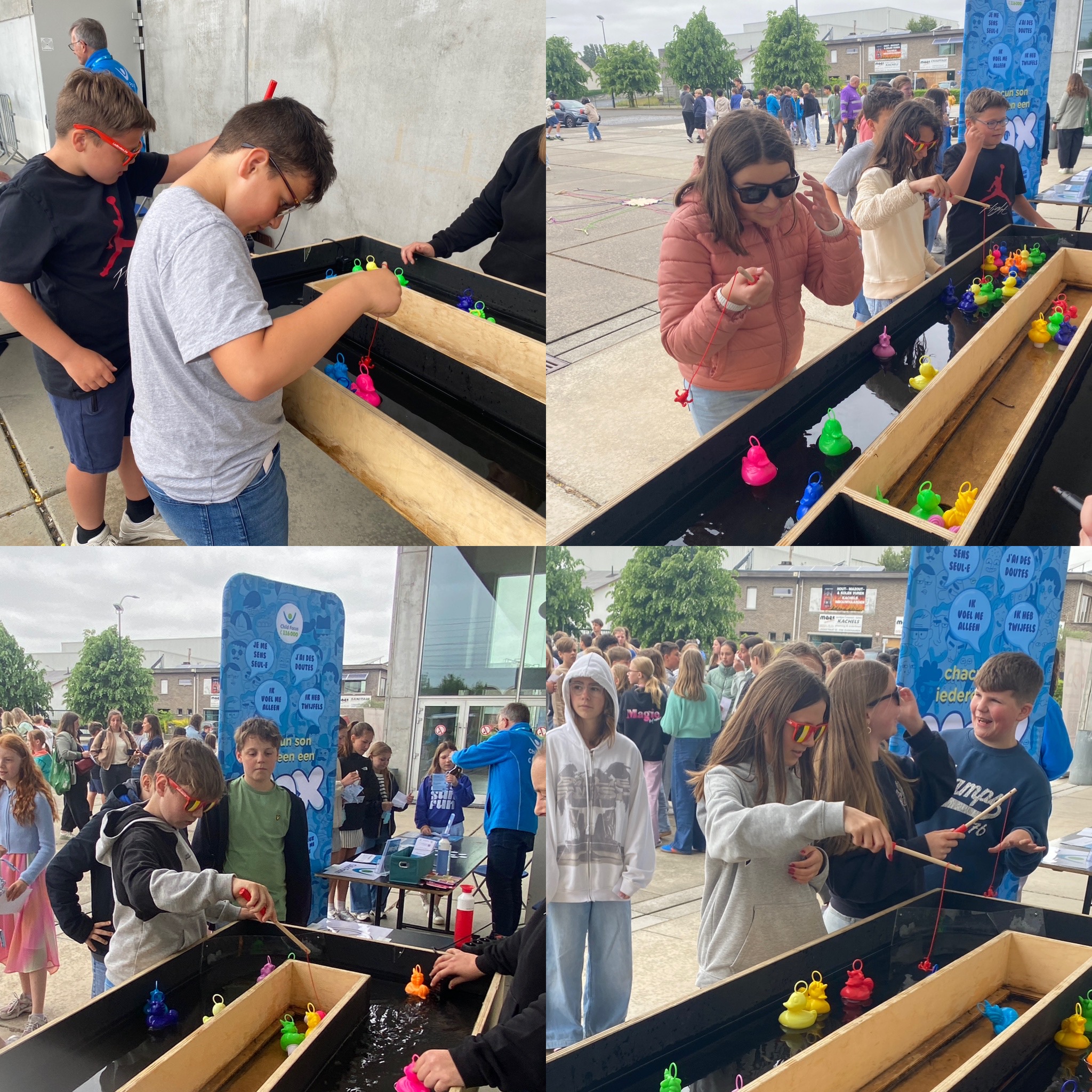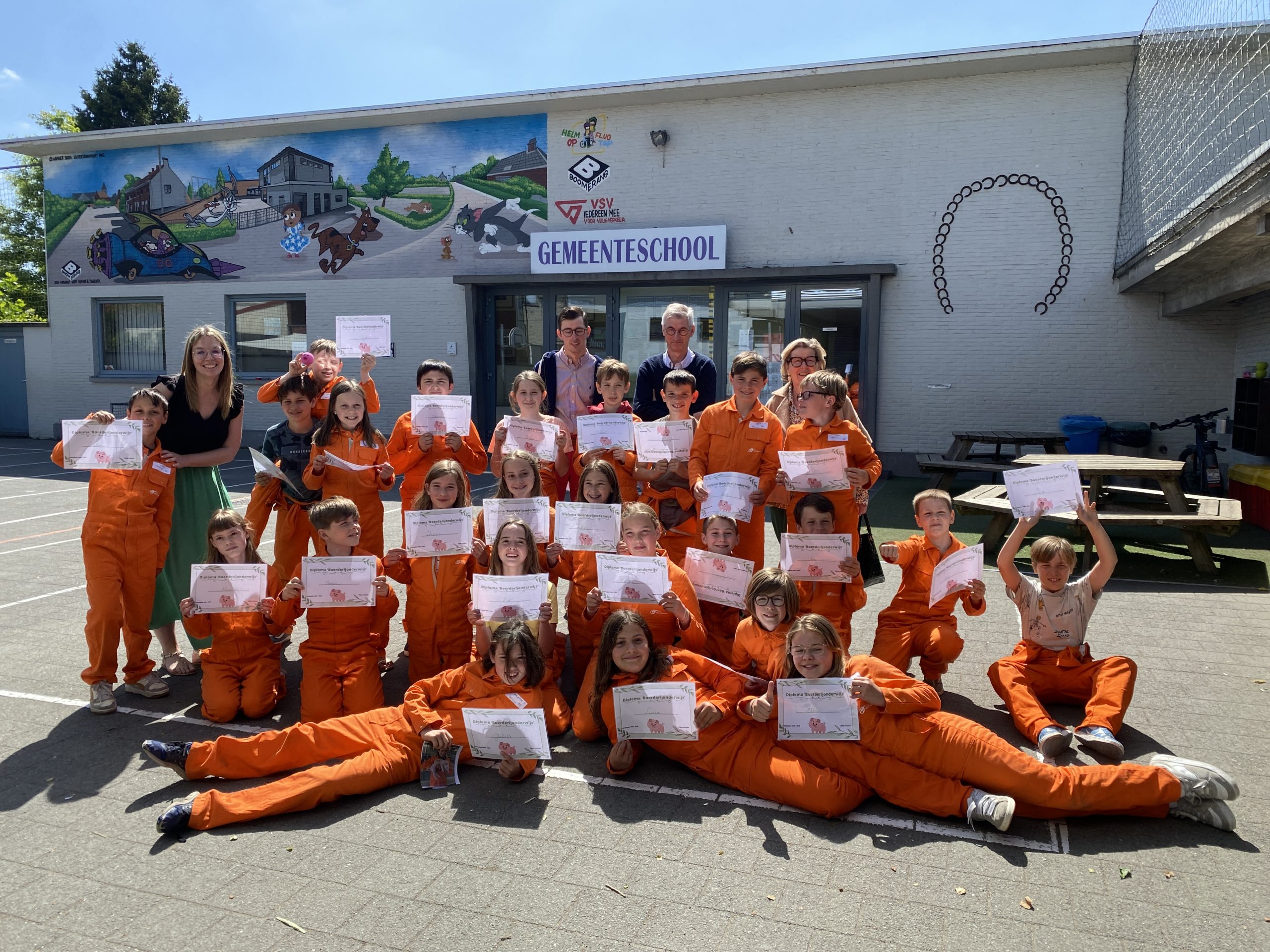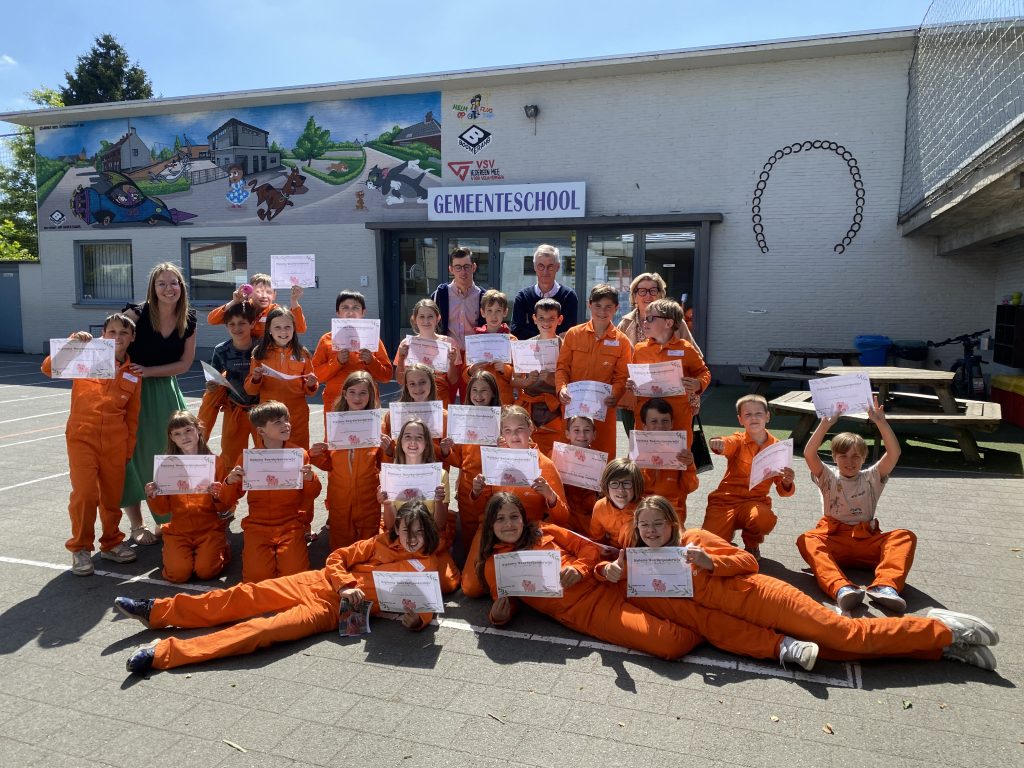 We fietsten samen naar de Qubus in Oudenaarde om er met nog vele andere zesdejaars het M.E.G.A-project op een fijne manier af te ronden. Eerst mochten we samen genieten van een theatervoorstelling ‘DOEDADIS’ van theater Stam. Verschillende thema’s zoals ‘online challenges’ kwamen aan bod en werden besproken. Daarna mochten de kinderen ‘een beurs’ met verschillende interessante standen bezoeken in het kader van M.E.G.A. Tenslotte mochten we onze mooiste dansmoves bovenhalen op de fruitsapfuif. Het werd een mega toffe voormiddag! In de namiddag gingen we op tocht met onze fiets door Petegem, onder leiding van politieman Tom. Hij bereidde ons zo goed mogelijk voor op het fietsexamen. Het werd een sportieve en leerrijke dag!