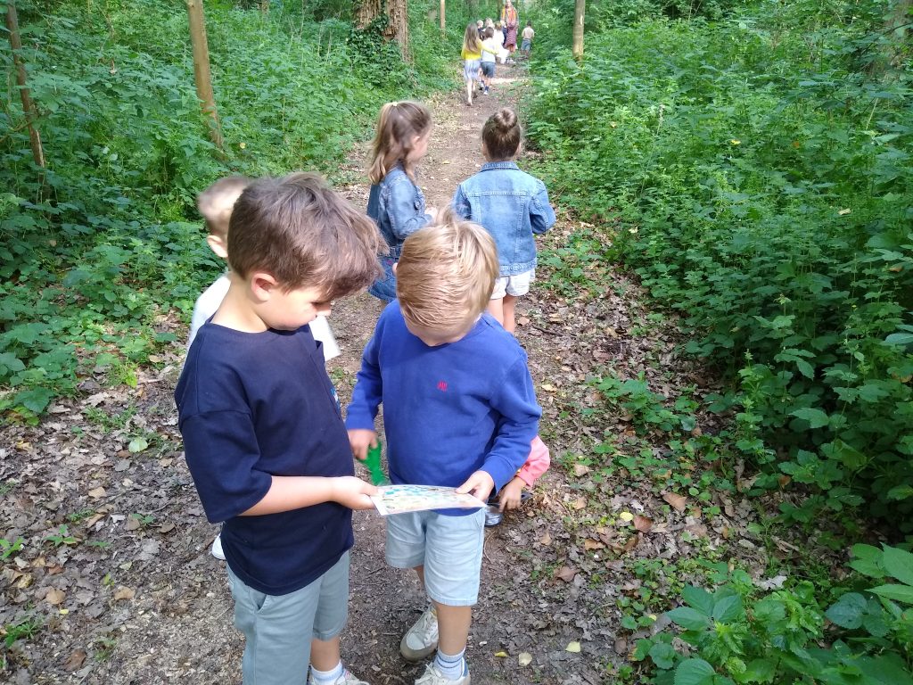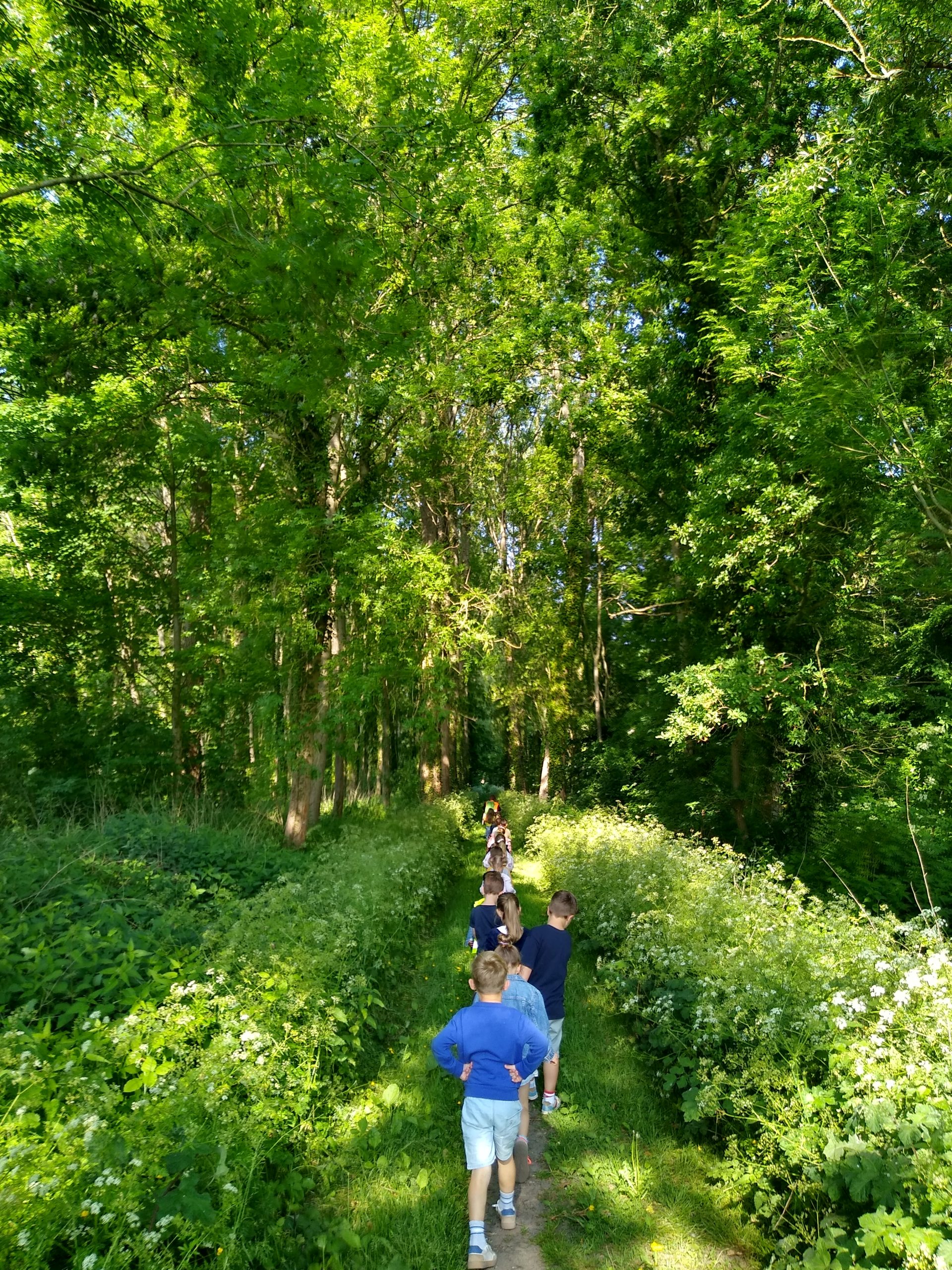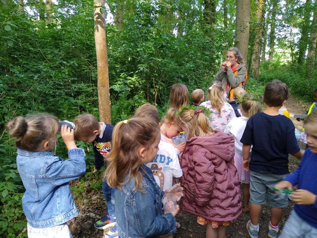 Vandaag trokken we met onze klas naar het biesbos, op zoek naar kriebelbeestjes. Met vergrootglazen en zoekkaarten speurden we ten volle op de bosgrond in het rond. Wat een boeiende natuur daar om ons heen. We leerden ook veel bij over de planten langs het bospad. Het kleefkruid was topfavoriet want daar kon je kronen mee maken 🙂!