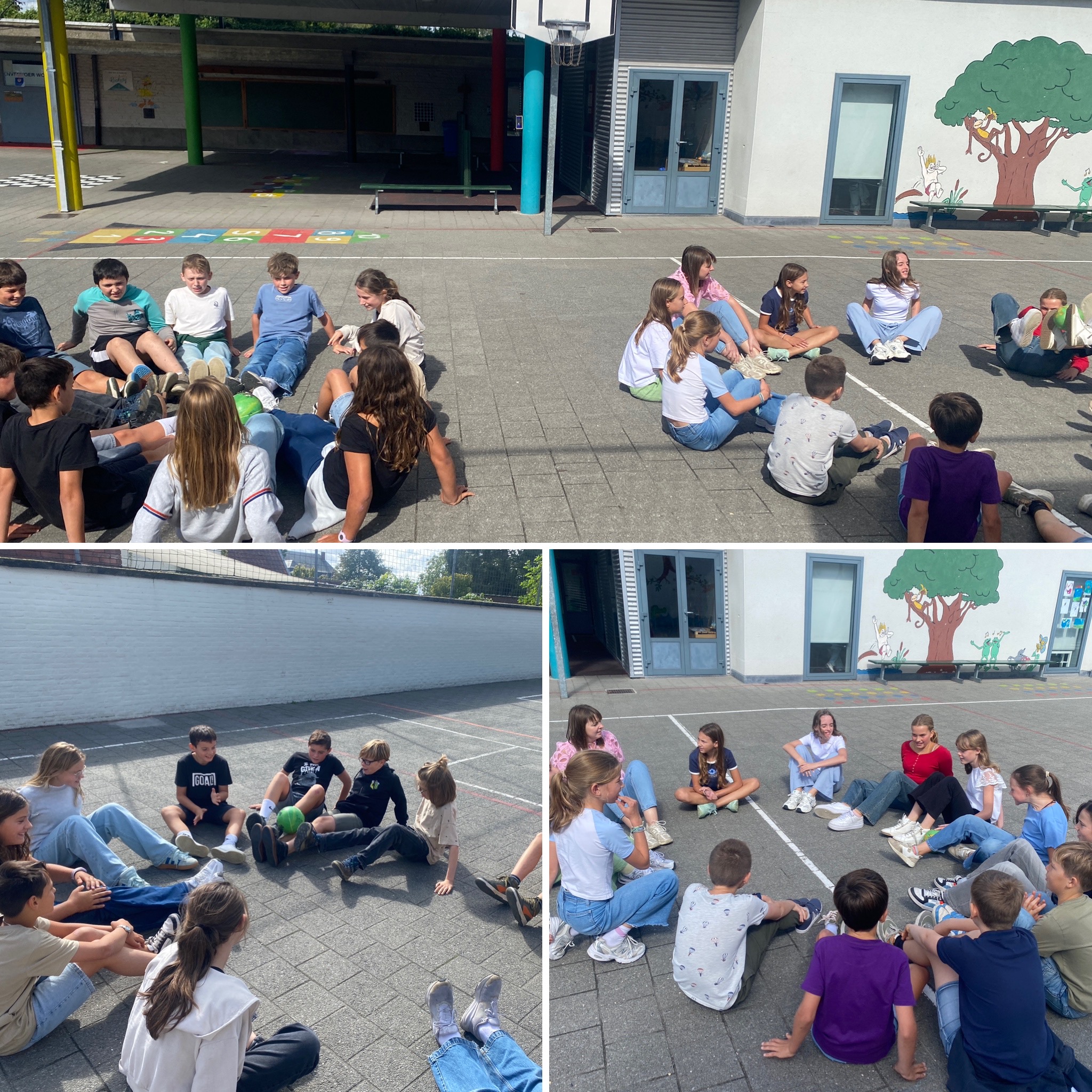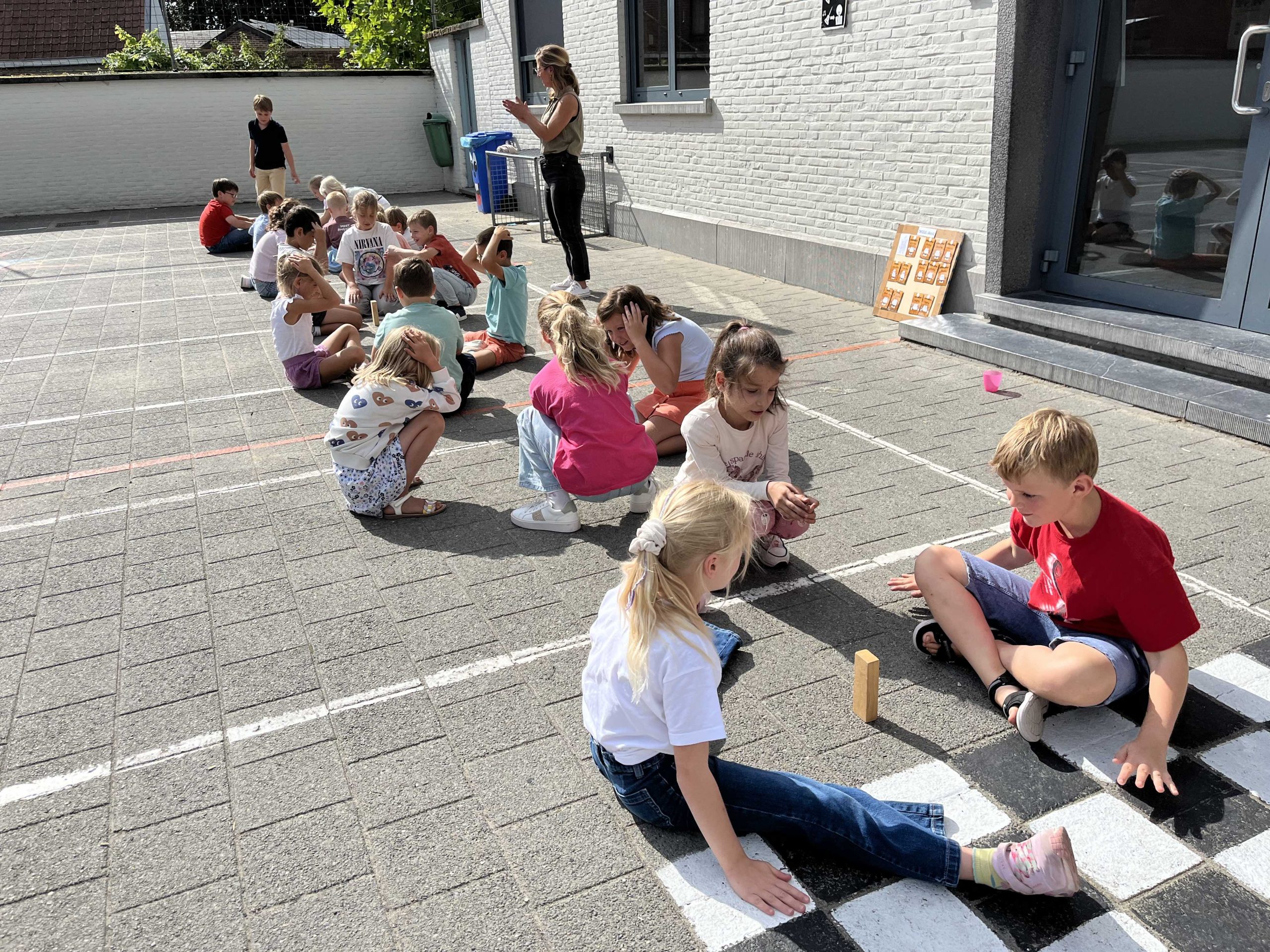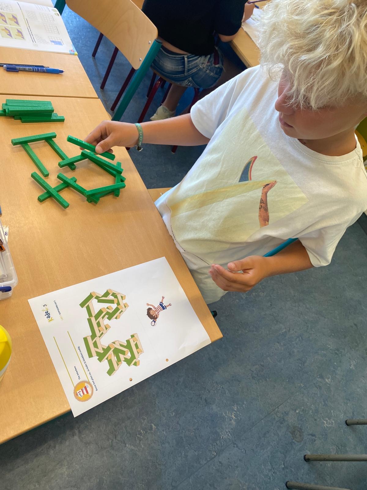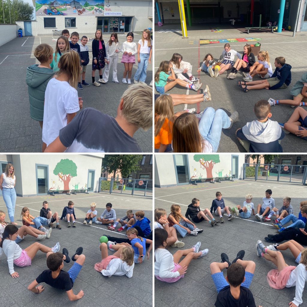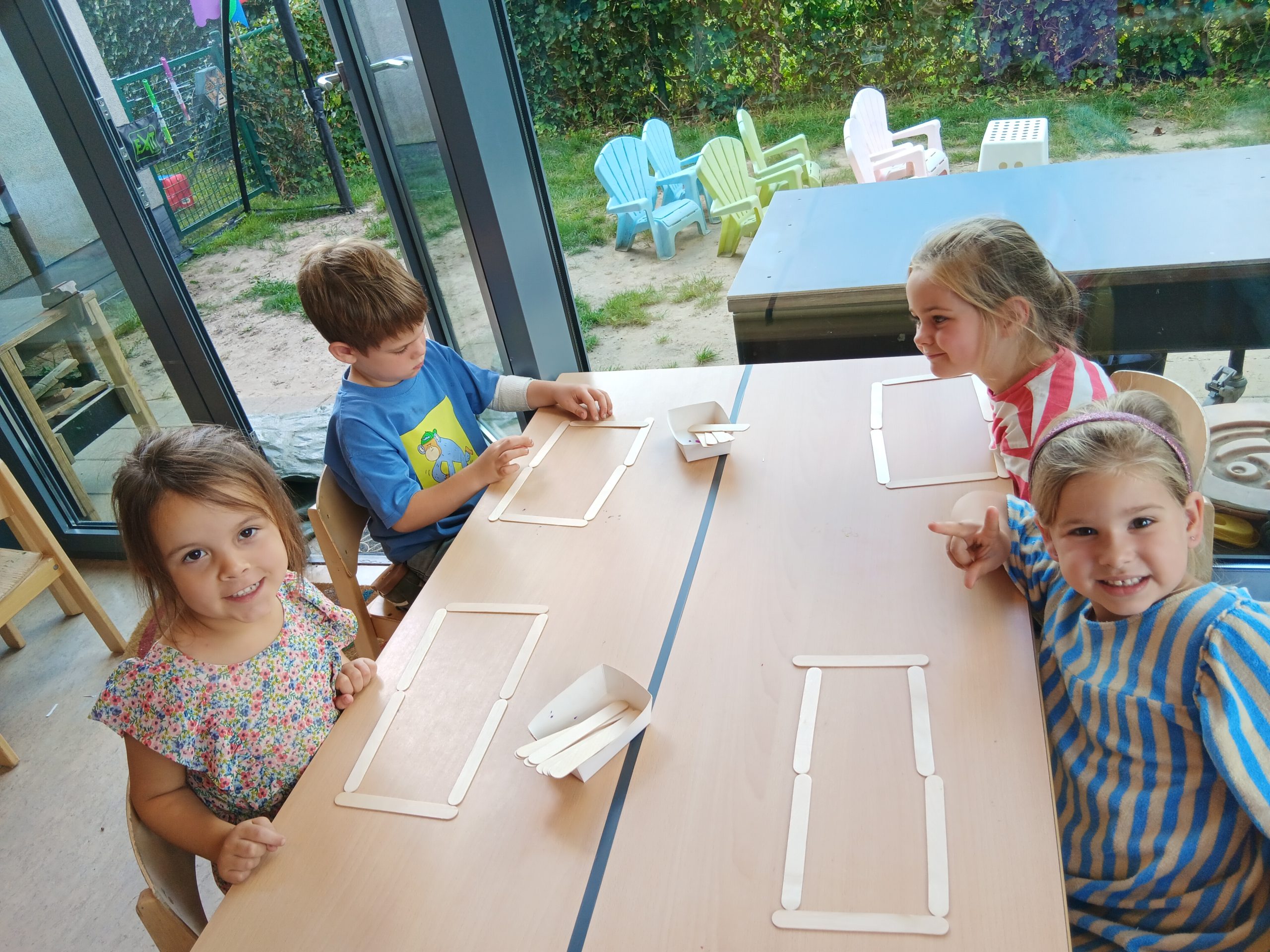 Vandaag kregen de dino’s de opdracht om in groepjes een vorm te maken met hun eigen lichaam.