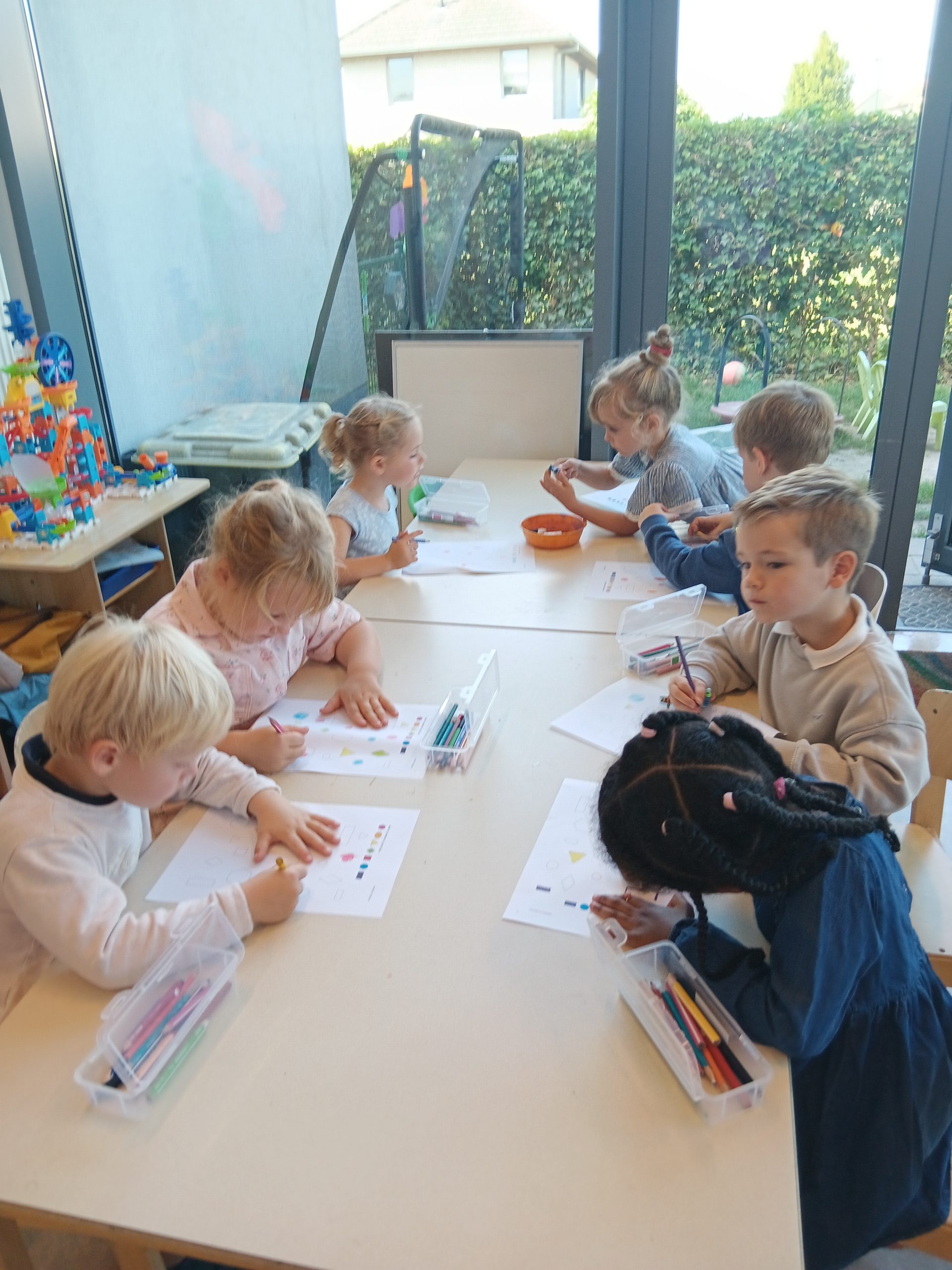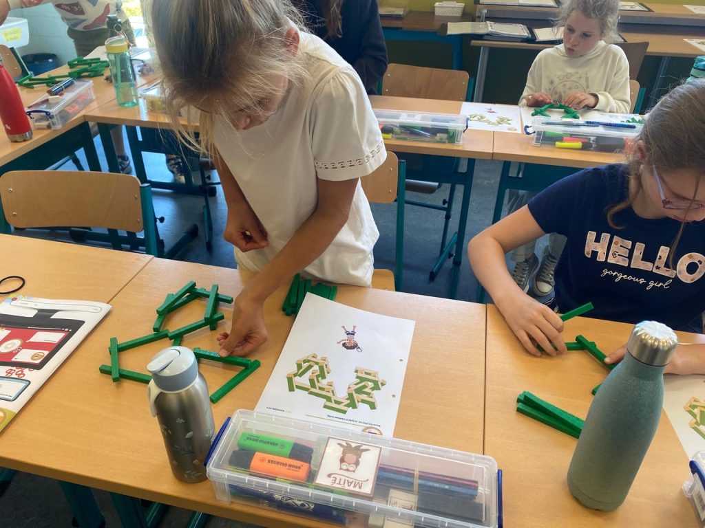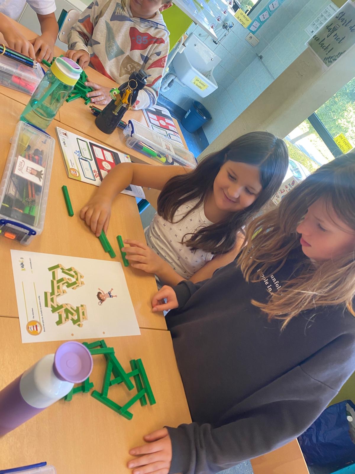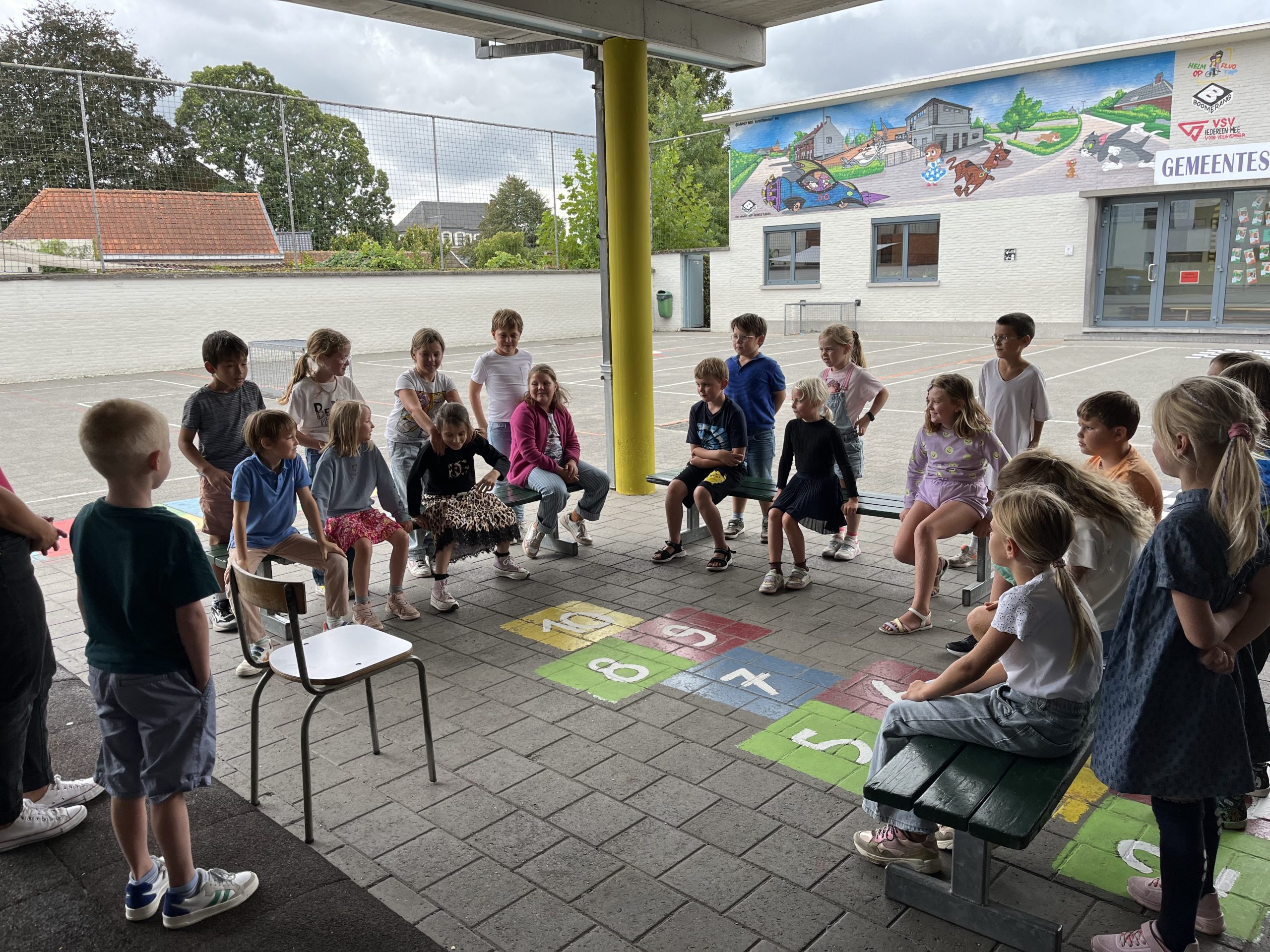 Vandaag kregen de dino’s de opdracht om in groepjes een vorm te maken met hun eigen lichaam.