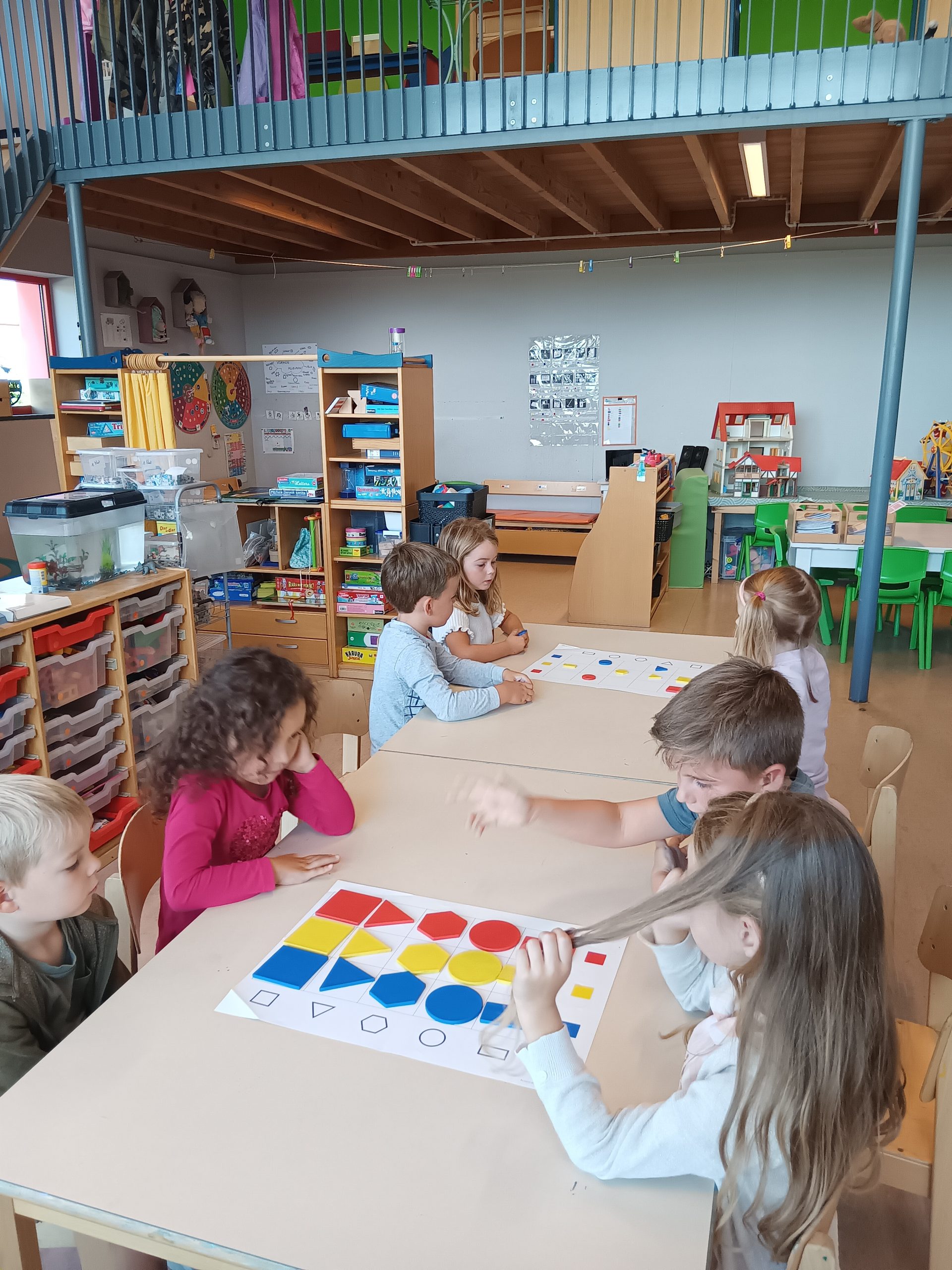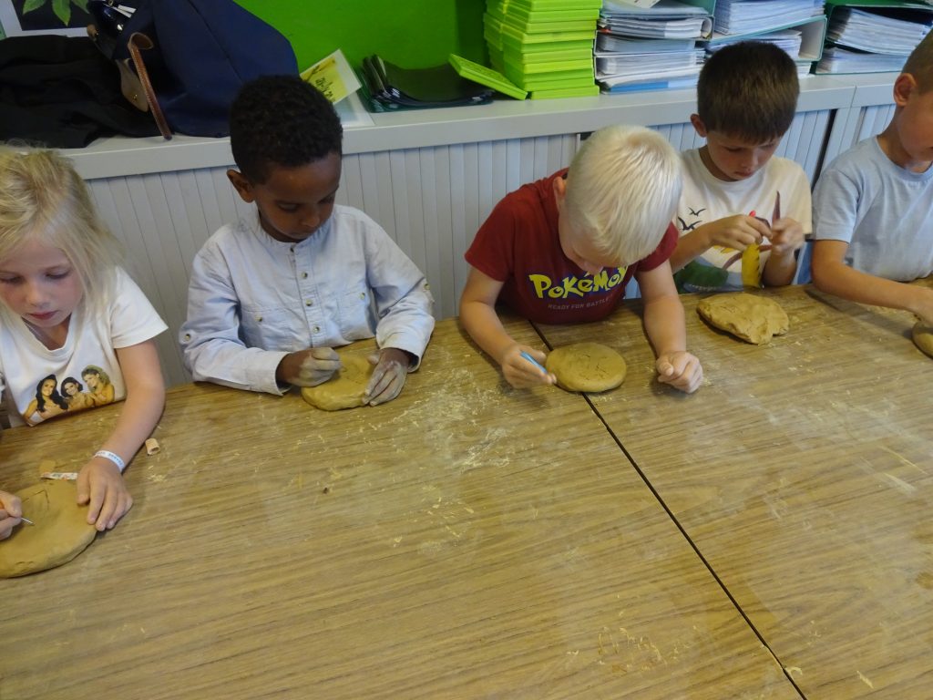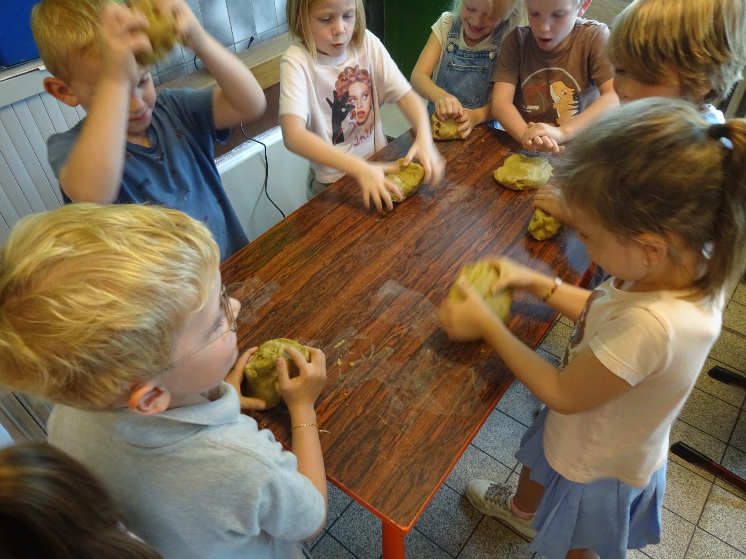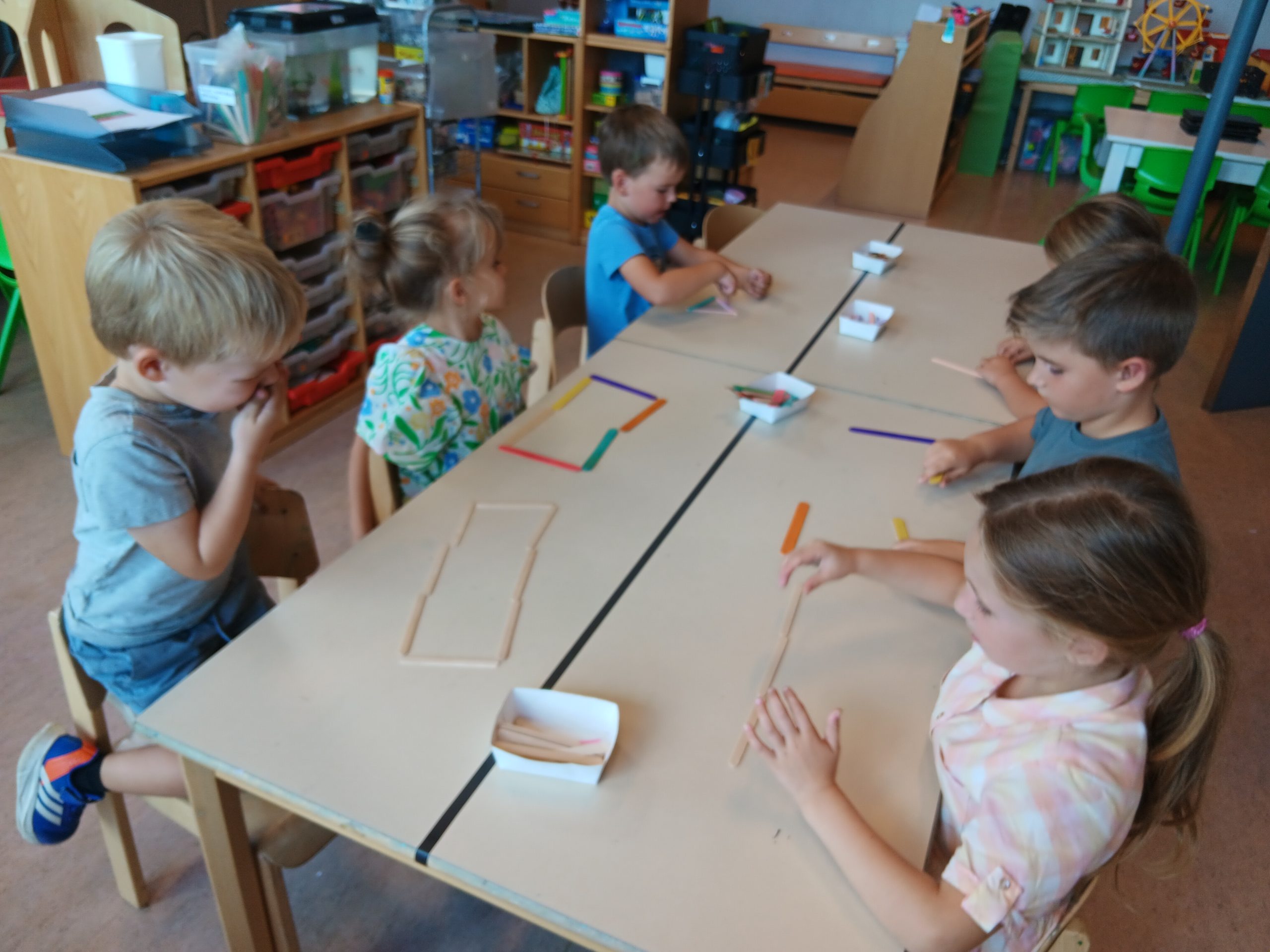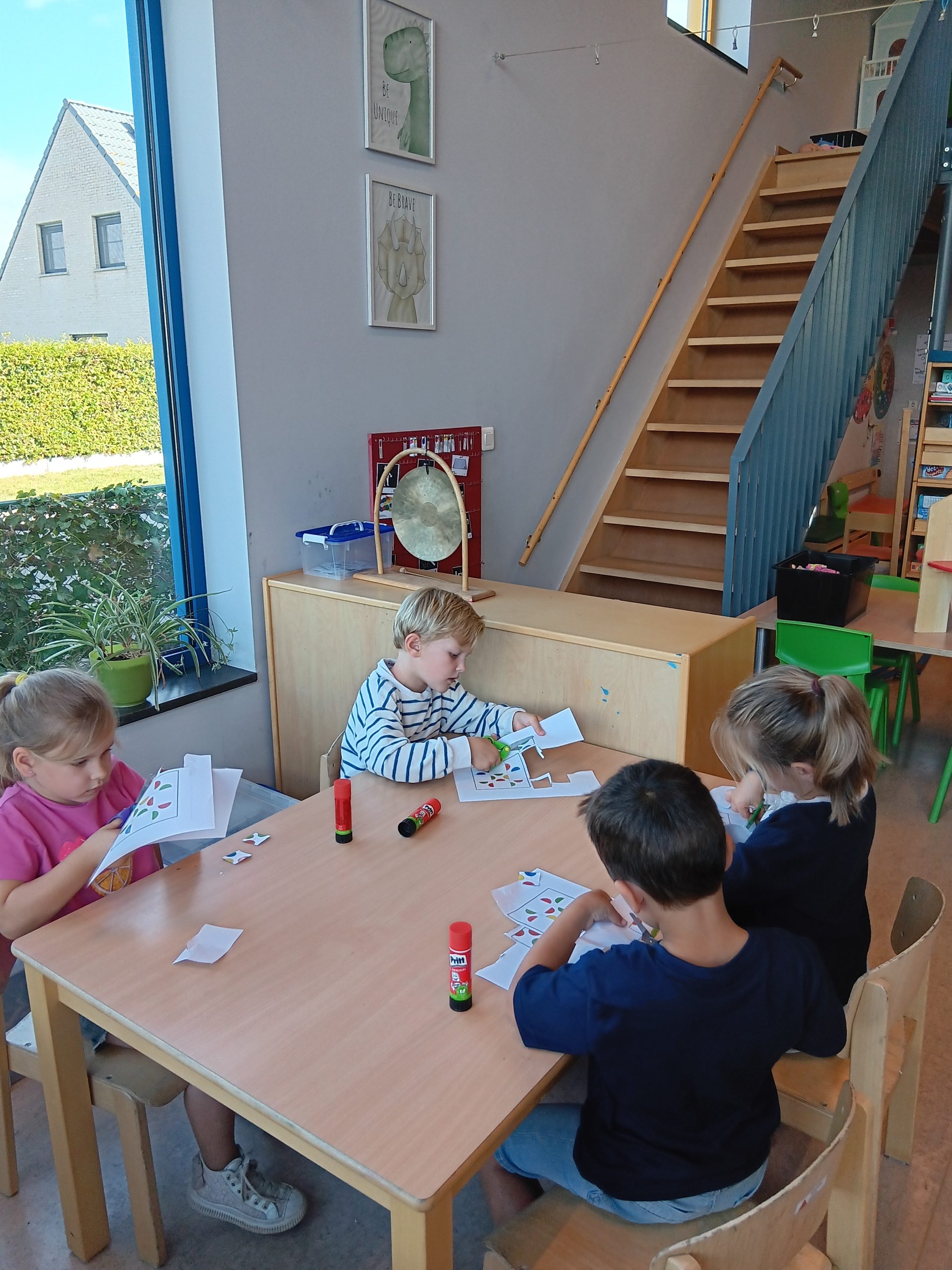 Vandaag kregen de dino’s de opdracht om in groepjes een vorm te maken met hun eigen lichaam.