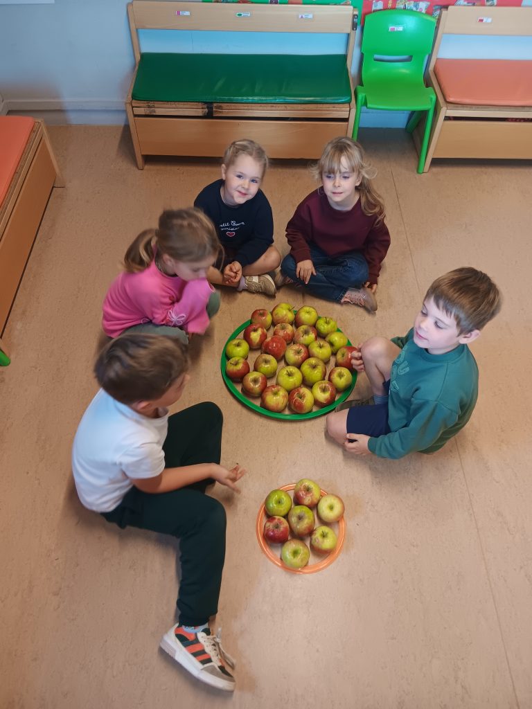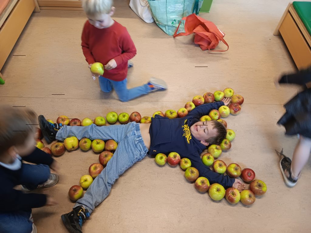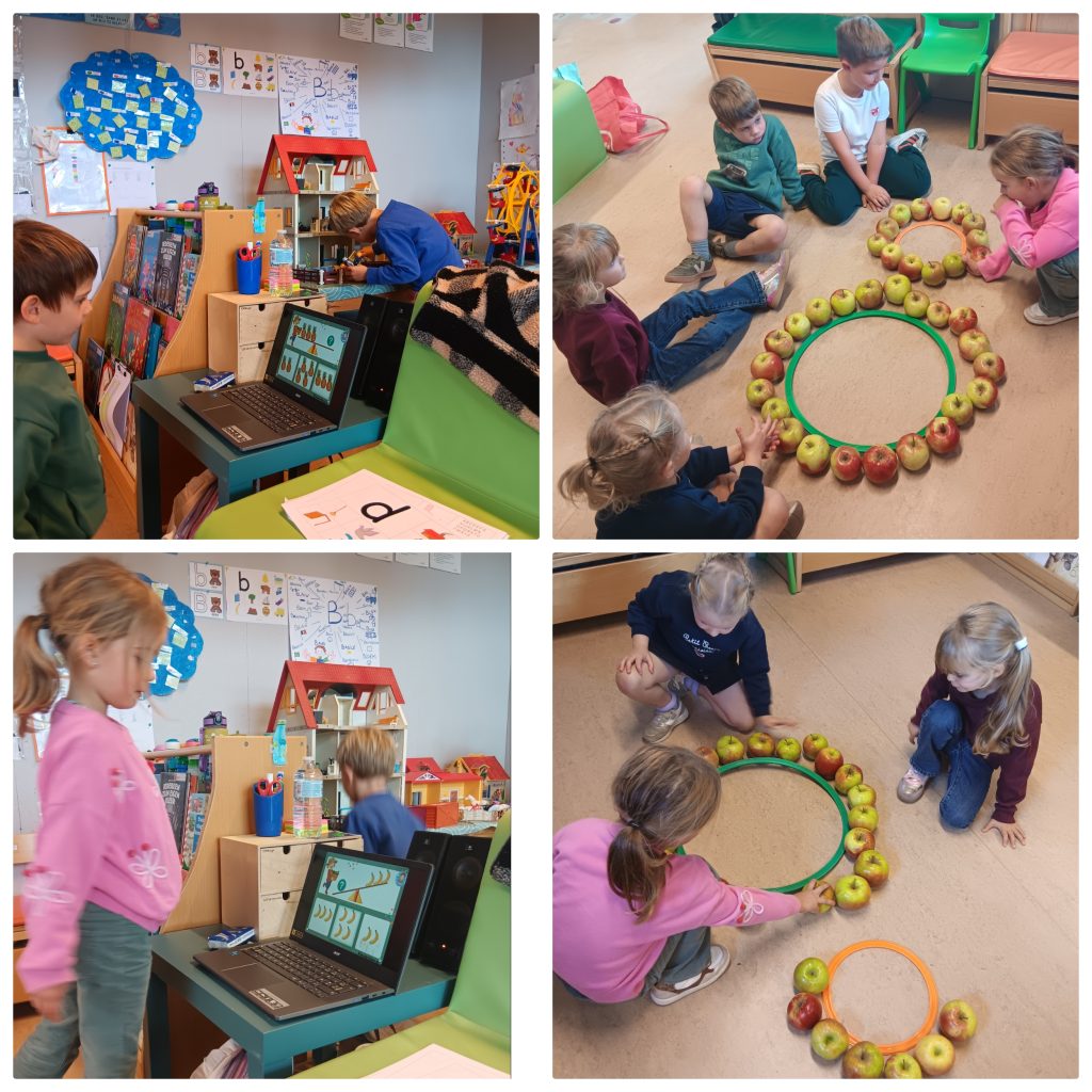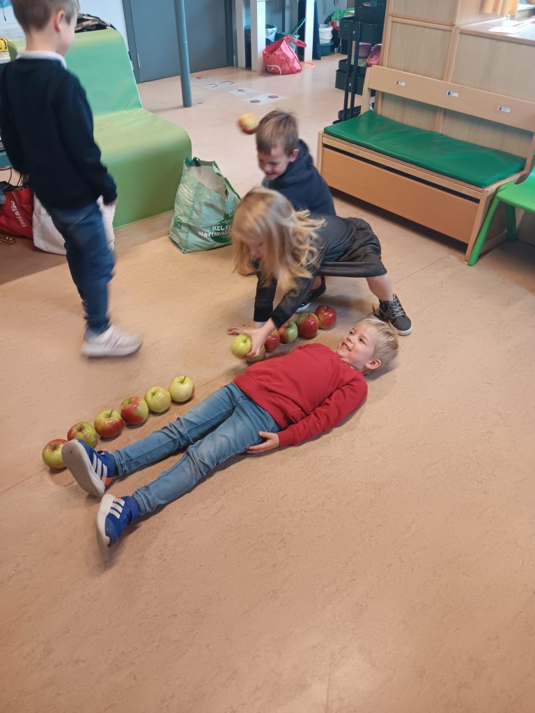 Vandaag een lesje meten met appels. We kijken hoeveel appels we nodig hebben om de lengte en de omtrek de meten van iemand . Ook meten we de omtrek en de oppervlakte van een kleine en grote hoepel. Wegen met de balansweegschaal mocht ook niet ontbreken om tot slot een oefening te maken op de chromebook hierover.