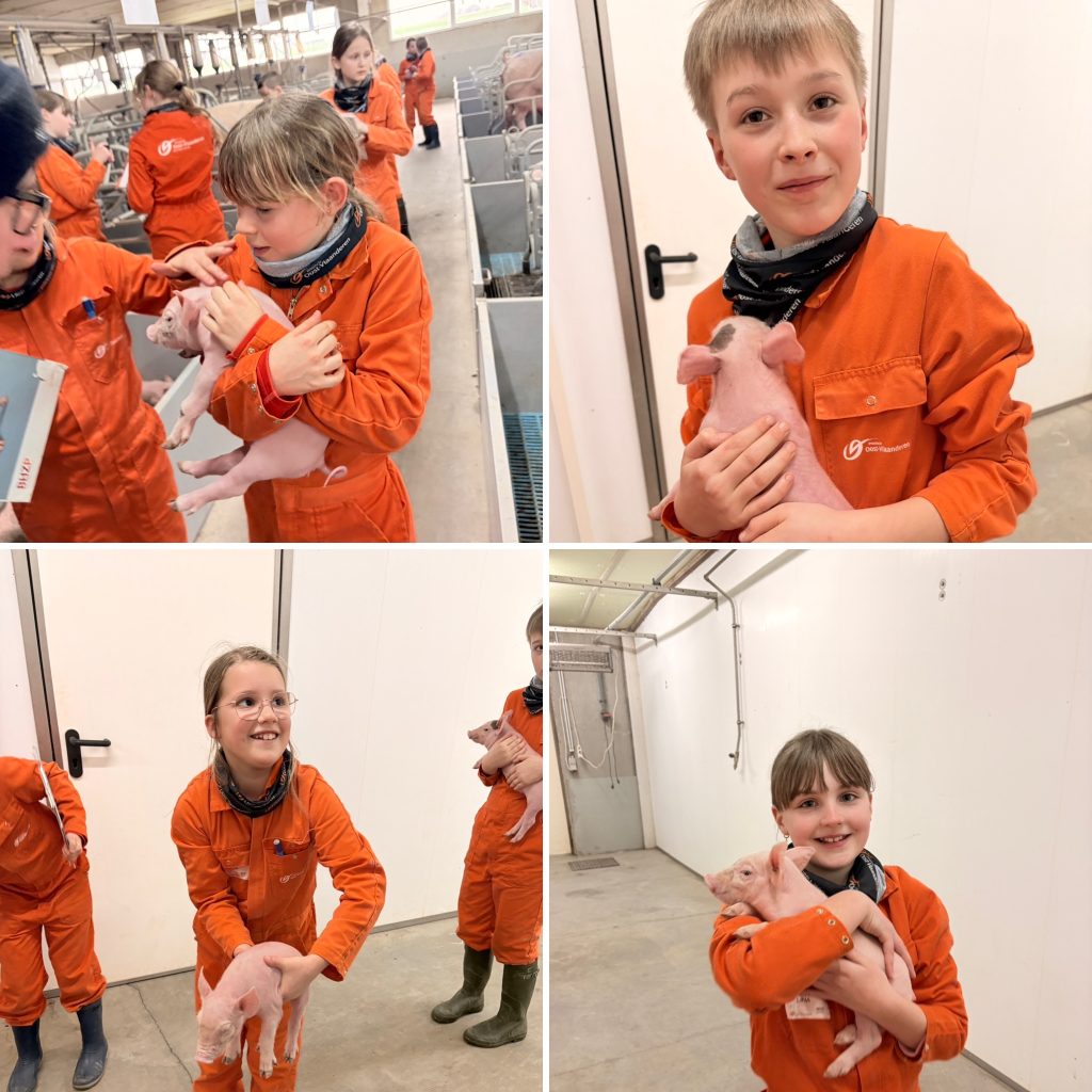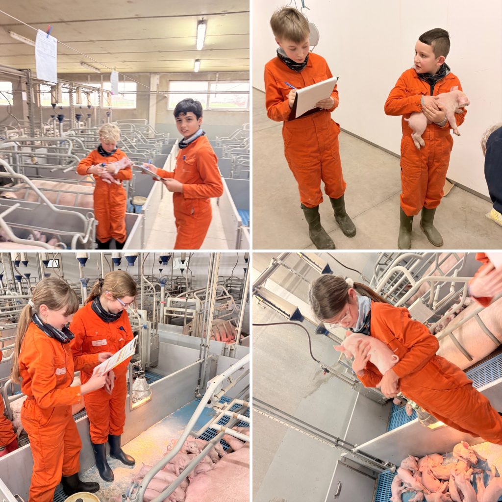 Het hoogtepunt van de namiddag? We mochten elk een eigen biggetje kiezen om van dichtbij op te volgen. We werkten vaak per twee, zodat we elkaar konden helpen bij de verschillende opdrachten. Zo hebben we ons biggetje zorgvuldig gemeten en gewogen, het aantal broertjes en zusjes geturfd en onderzocht of het een mannetje of een vrouwtje was. We kijken nu al uit naar de volgende keer! 🐷