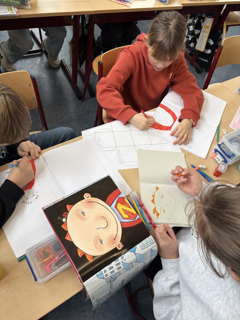 Op 10 maart komt Tine Mortier haar boeken voorstellen aan de derde graad. Om ons goed voor te bereiden, bekeken de leerlingen al enkele boeken. Ze maakten hierover een creatieve verwerking met tekeningen, sleutelwoorden en belangrijke elementen uit het verhaal. Op die manier zijn we klaar voor de auteurslezing!