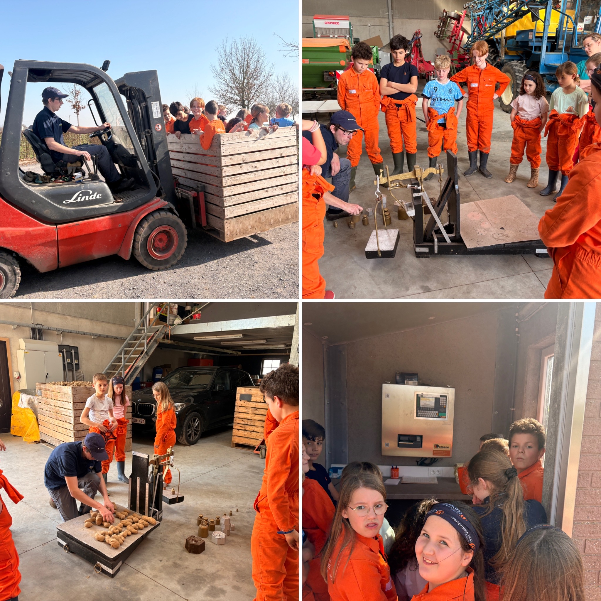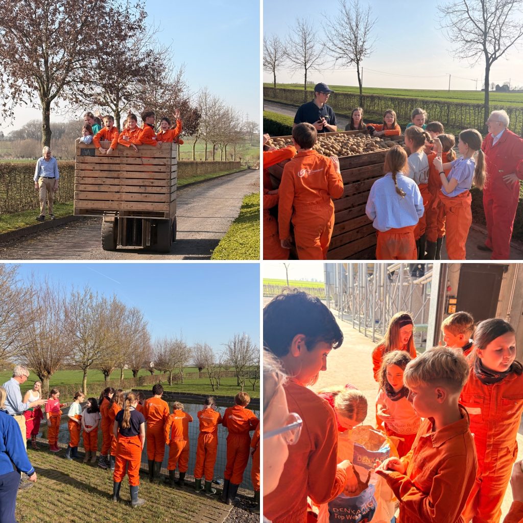 Met een grote kist aardappelen leerden we het verschil tussen bruto, tarra en netto. Als beloning mochten we zelfs even meerijden in de kist!