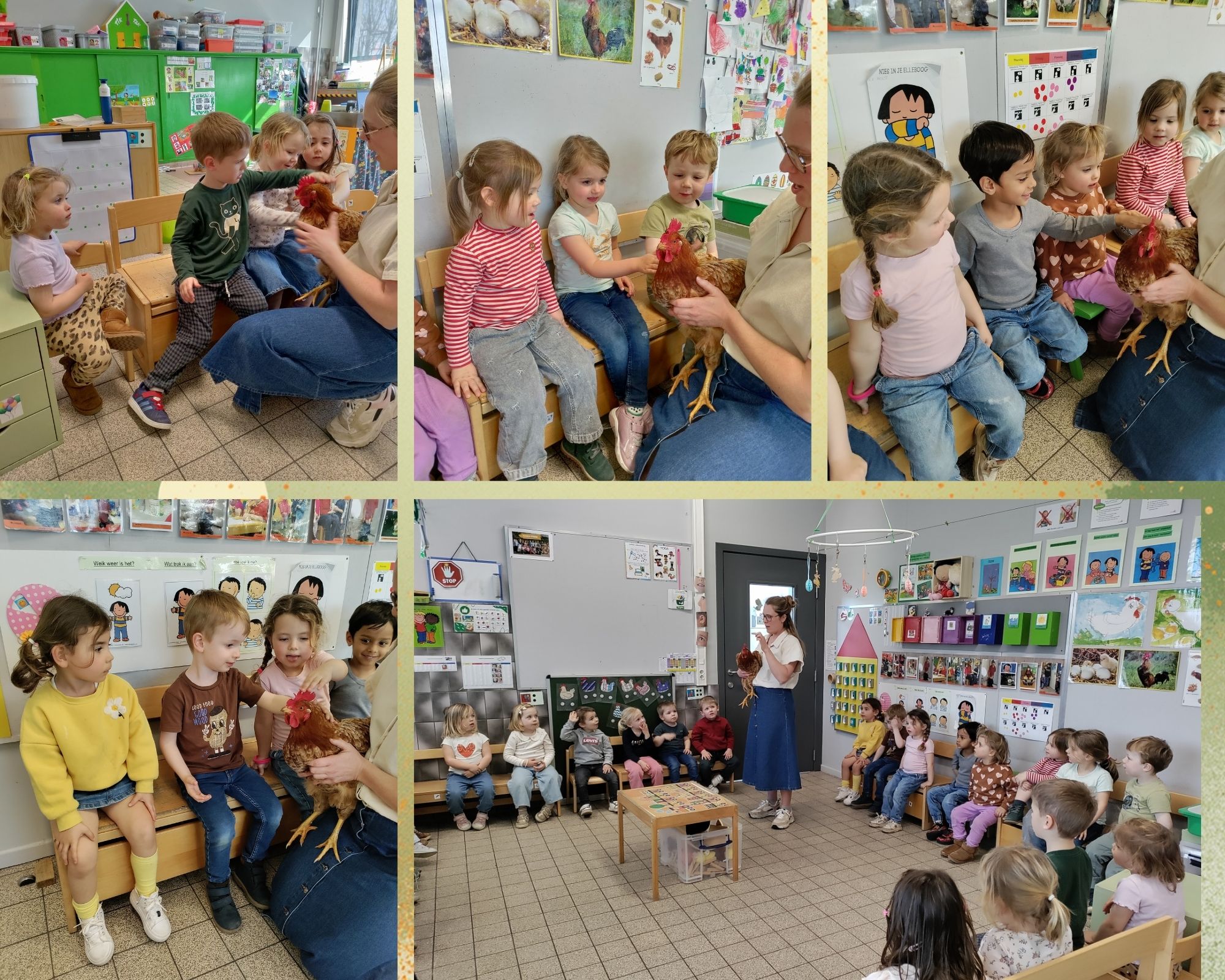 Juf Els bracht haar kip Geeltje mee en dat zorgde meteen voor heel wat verwonderde blikken.