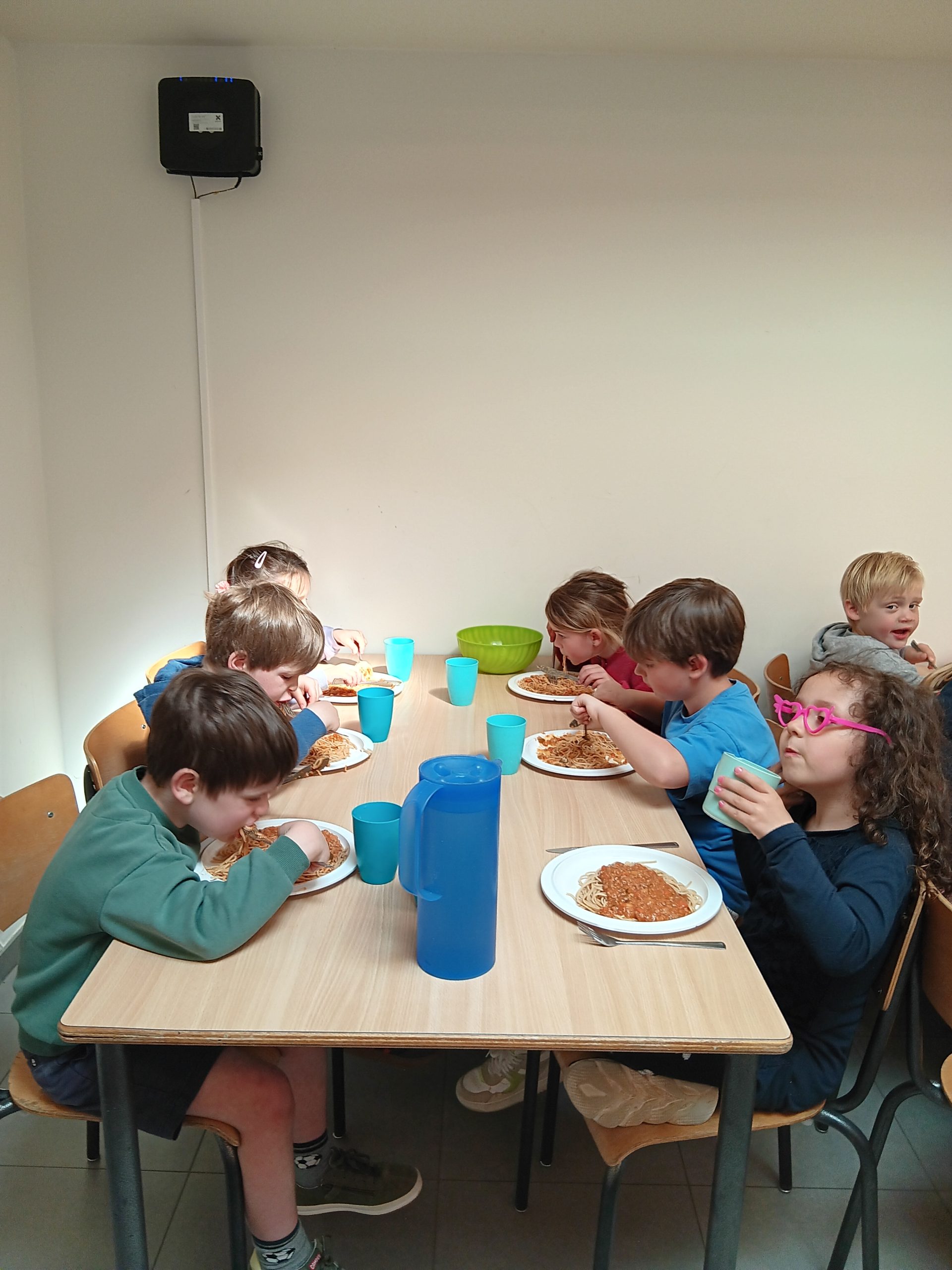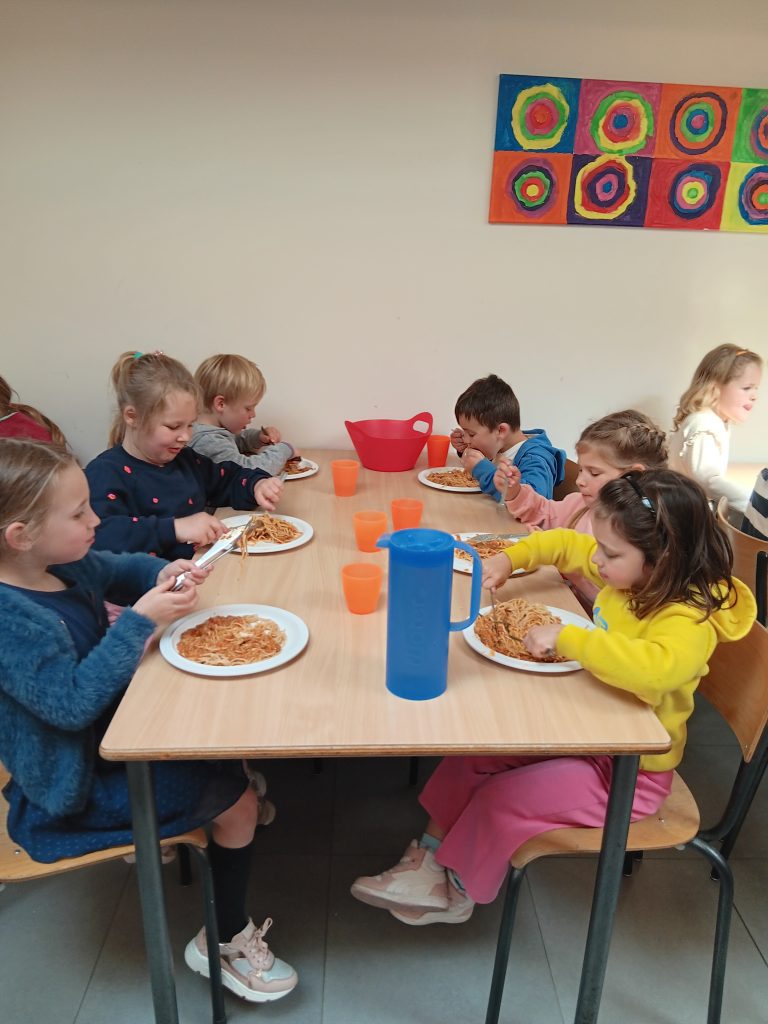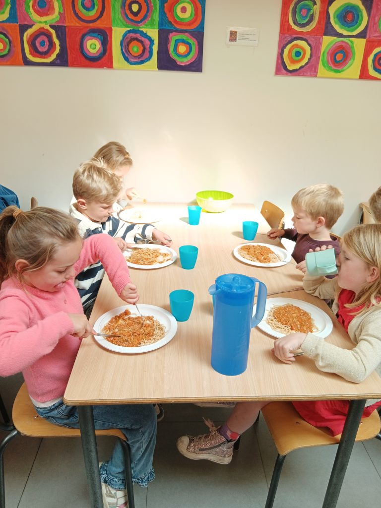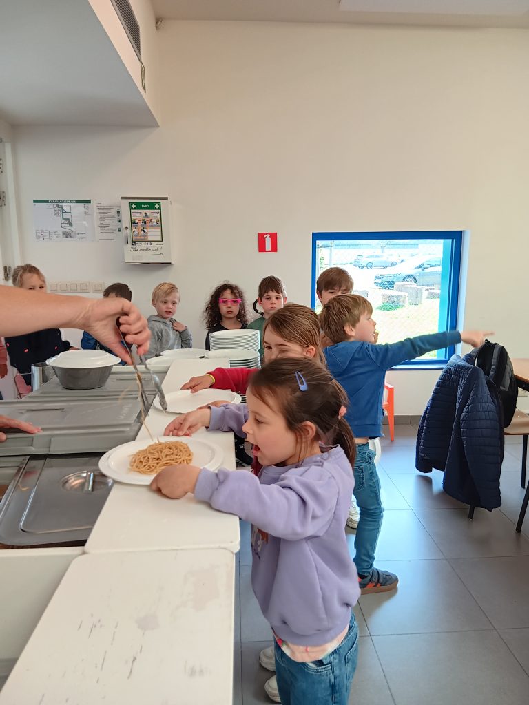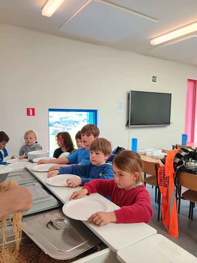 Vanaf gisteren mogen de derde kleuters zelf om hun eten gaan. Daarbij eten ze nu ook met mes en vork.